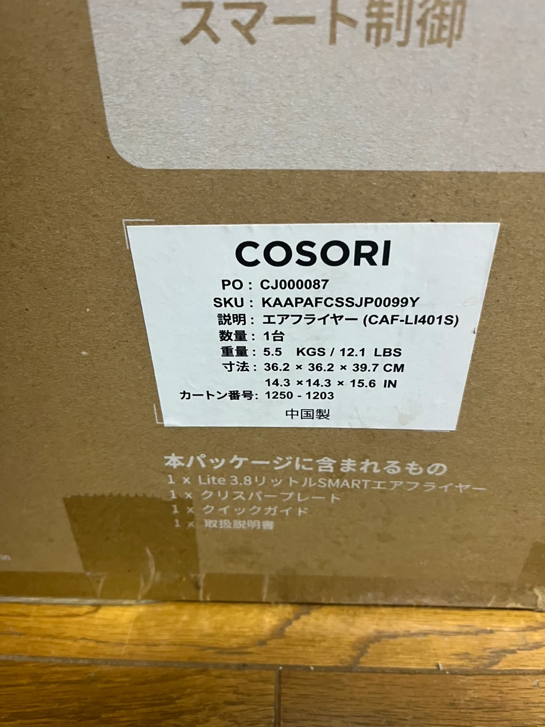 コソリのスマートエアフライヤーです。 【情報】 ブランド:コソリ 容量:3.8リットル 型番:CAF-LI401S 【状態】 未使用品です エアフライヤー COSORI (CAF-LI401S) Amazonでは12000円程で購入。 衝動買いで購入したものの、置き場に困り未開封となっております。 中を開けてない為、色は恐らく黒だったと思います。 必要であれば開封し確認致します。 未使用・未開封となります。 直近の対応日時 10/10 18時以降 10/11 18時以降 10/13 10時頃or18以降 直近のお取引き可能なお時間になります。 ぜひご検討をお願い致します。 お渡しはファミリーマート中野鷺宮1丁目店となります。 (東京都中野区鷺宮1丁目23-17) 中古品につき、ノークレーム・ノーリターンにてよろしくお願い致します。 未使用品ですが、中古品であることご了承ください。