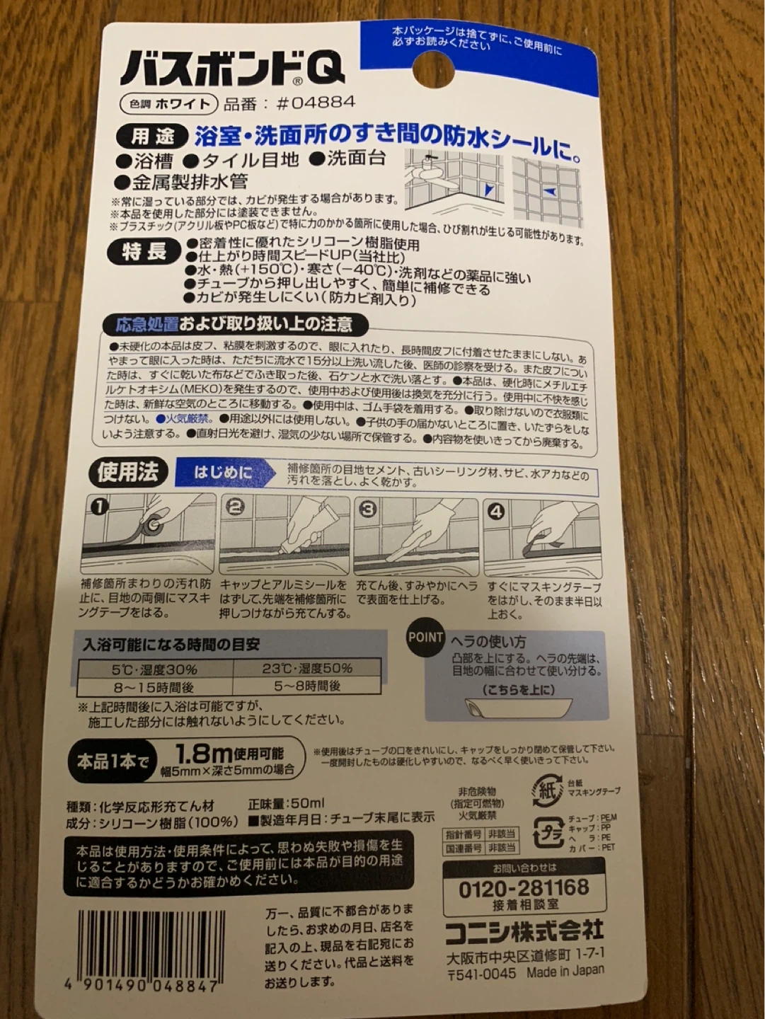 コニシのバスボンドQです 【情報】 ブランド:コニシ 商品名:バスボンドQ 用途:浴室・洗面所のすき間防水シール 容量:50ml 色調:ホワイト 【状態】 未使用品 中古品であることご了承ください