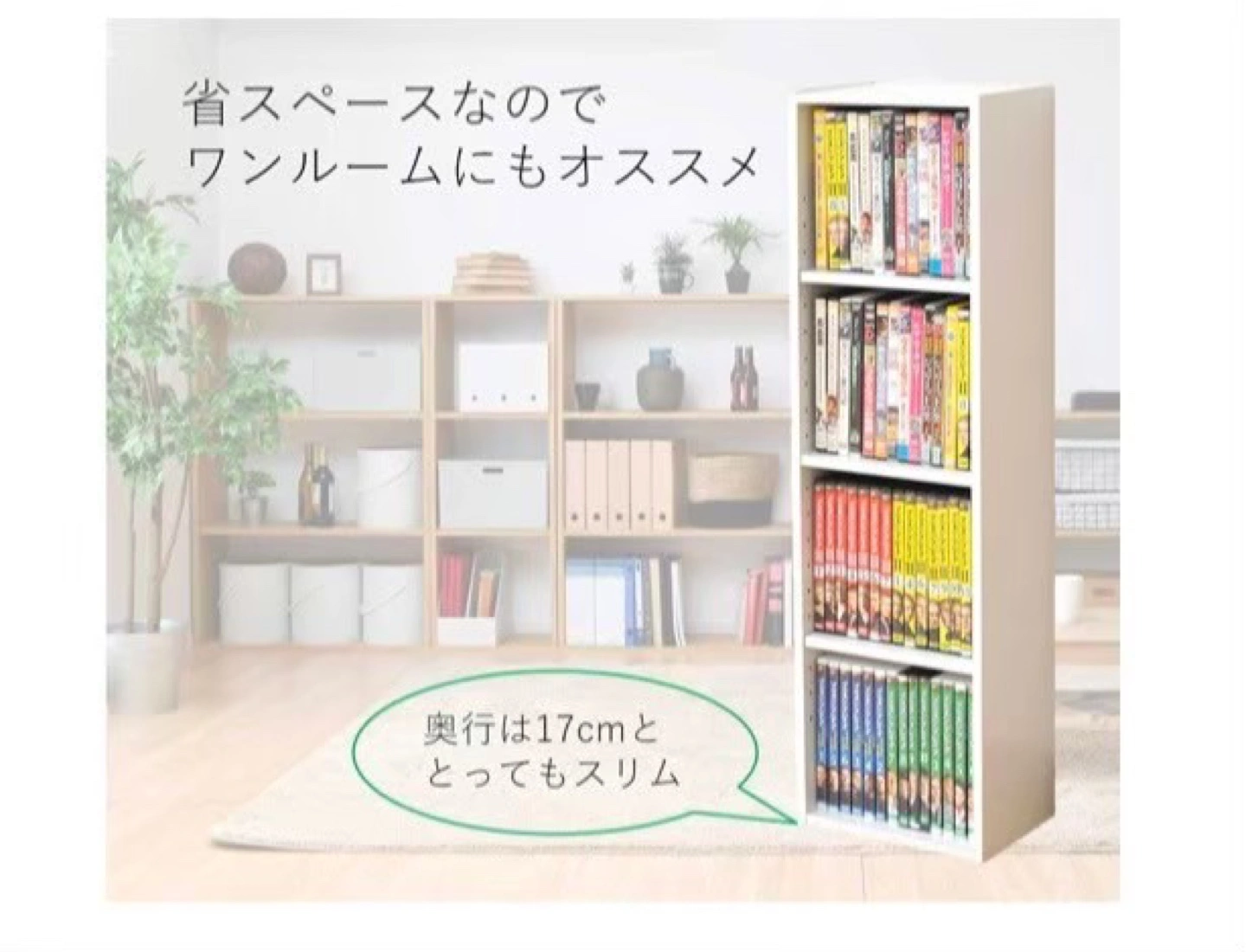 山善(YAMAZEN) コミック・CD・DVD収納ボックス カラーボックス ホワイト CCDCR-2690(WH) ① あくまで素人出品・素人検品・一度人の手に渡ったものであることをご理解の上、神経質な方は購入をお控え下さい。 メーカー山善(YAMAZEN) 商品モデル番号CCDCR-2690(WH) 製品サイズ17 x 25.5 x 90 cm; 5.08 kg ASINB0051MOZI0 登録情報 Amazon 売 れ筋ランキング: - 6,959位ホーム&キッチン (ホーム&キッチンの売れ筋ランキングを見る) - 14位本棚 トップハイライト 材質 本体:プリント紙化粧繊維板 取り付けタイプ フロアマウント 部屋タイプ 事務所 棚のタイプ 階層型シェルフ 棚数 4 shelves 特徴 大容量 材質:プリント紙化粧パーティクルボード、プリント紙化粧繊維板 収納目安:CD100枚、DVD60枚、コミック64冊 お客様組立品 重量:5.5kg 原産国:インドネシア 本体サイズ:幅26×奥行17×高さ90cm 事務所の簡易本棚、書棚、収納ボックス、オープンラック、CDラック、DVDラックとして。 本体サイズ:幅26×奥行17×高さ90cm 重量:5.5kg 材質:プリント紙化粧パーティクルボード、プリント紙化粧繊維板 原産国:インドネシア