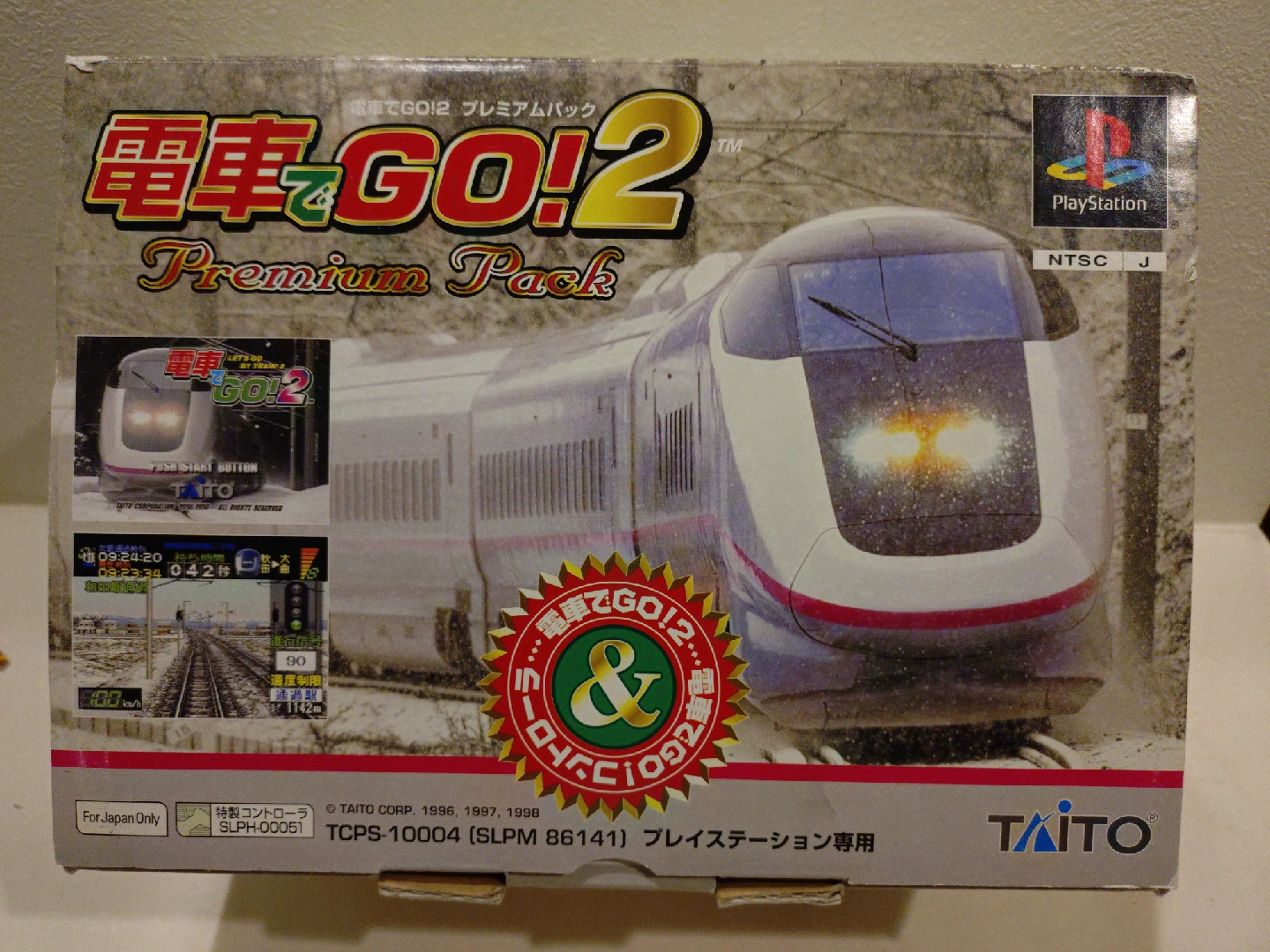 電車でGO!2 プレミアムパックの箱です 【情報】 ブランド:タイトー ゲーム:電車でGO!2 機種:プレイステーション 型番: TCPS-10004 (SLPM 86141) 【状態】 コントローラーは未使用未開封ですが、ソフトはないです