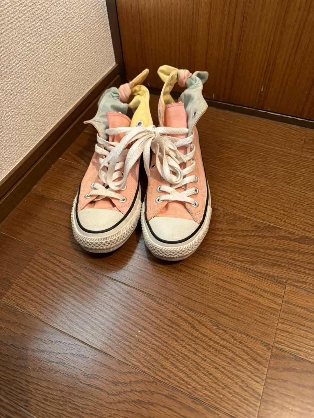 コンバースのオールスタースニーカーです ・カラー:ピンク、イエロー、水色 ・ブランド:コンバース ・ALL STAR のロゴあり ・使用感あり ・23.5 Mサイズ 中古品であることご了承ください