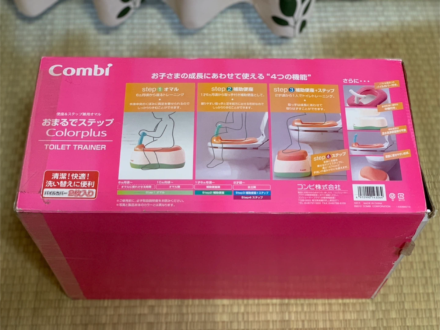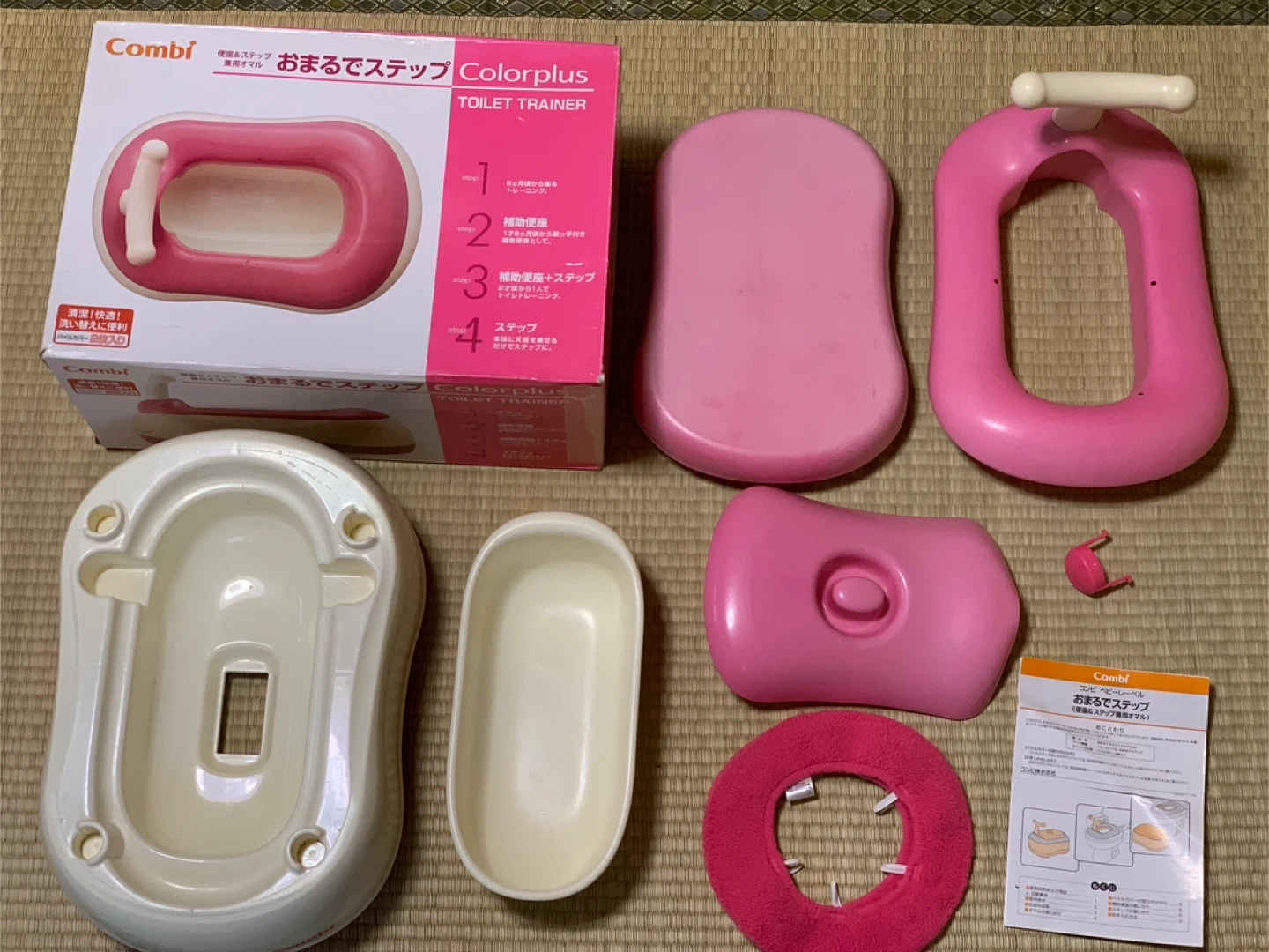 コンビのトイレトレーナーです 【情報】 ブランド:コンビ 商品名:Colorplus TOILET TRAINER 色:ピンク 【状態】 ステップだけ使用期間が長かった為他の物より色褪せがあります。 【付属品】 箱、説明書、写真に写っているもの全て。 パイルカバーは1枚です。 中古品であることをご了承下さい。