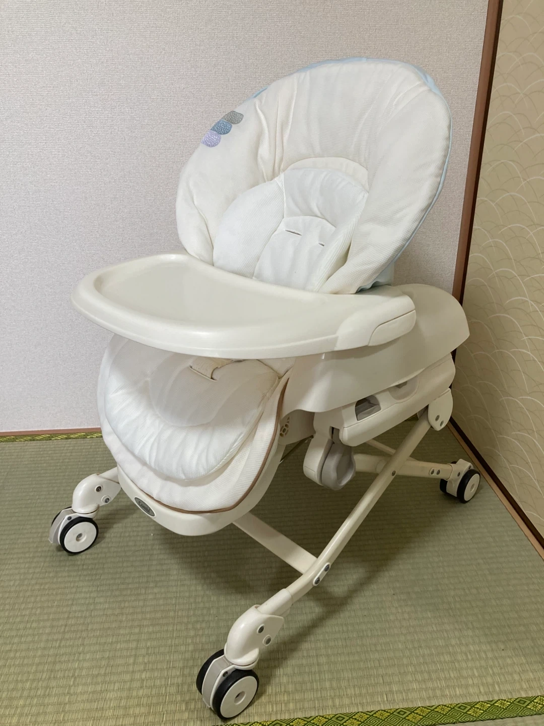 Combi ネムリス ハイ&ロースウイングラック 3万円ほどで購入しました。 調整角度: 5段階 荷重制限: 18kg 半年ほど使用しました。 多少使用感ありますが、まだまだ問題なく使用できます。 取説はございません。 軽いタッチで優しく揺れる手動スウィングはぐずりをなだめる助けになります。 食べこぼし等で汚れても、外して洗濯機で丸洗いできます。 新生児から4歳頃まで成長に合わせて幅広いシーンで活躍します? 練馬区石神井町8丁目アパートまで受け取りに来られる方お願いいたします。 バランサー ハイローチェア