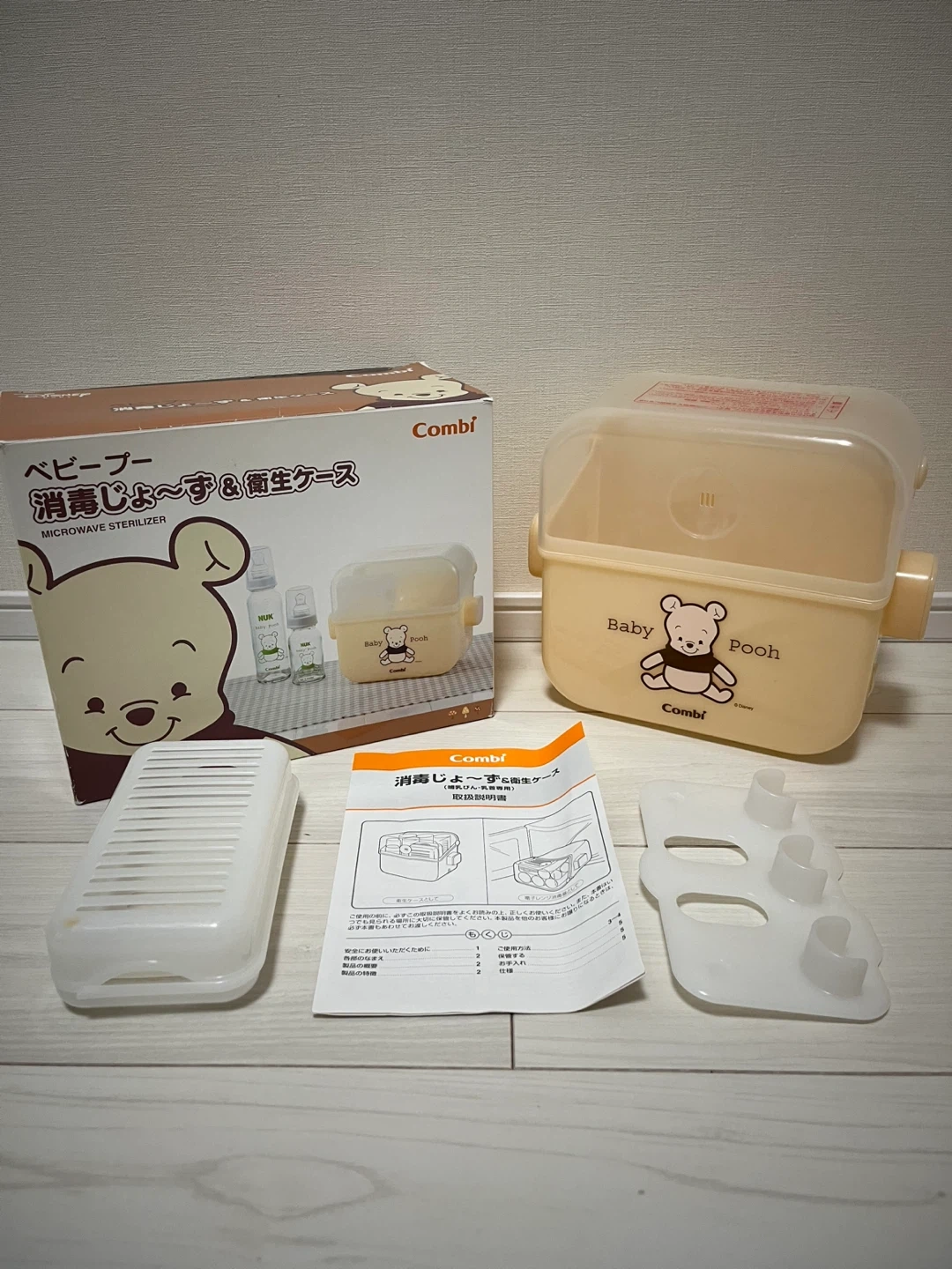 コンビの消毒じょ〜ず&衛生ケースです ベビープーがかわいいお品です⭐︎ 【情報】 ブランド:コンビ 商品名:消毒じょ〜ず&衛生ケース キャラクター:Baby Pooh 【状態】 使用感はありますが、比較的きれいです 【付属品】 箱、説明書、付属品は写真にあるものが全てです 素人検品のため見落としがあるかもしれません。 中古品にご理解のある方からのご購入お待ちしております。