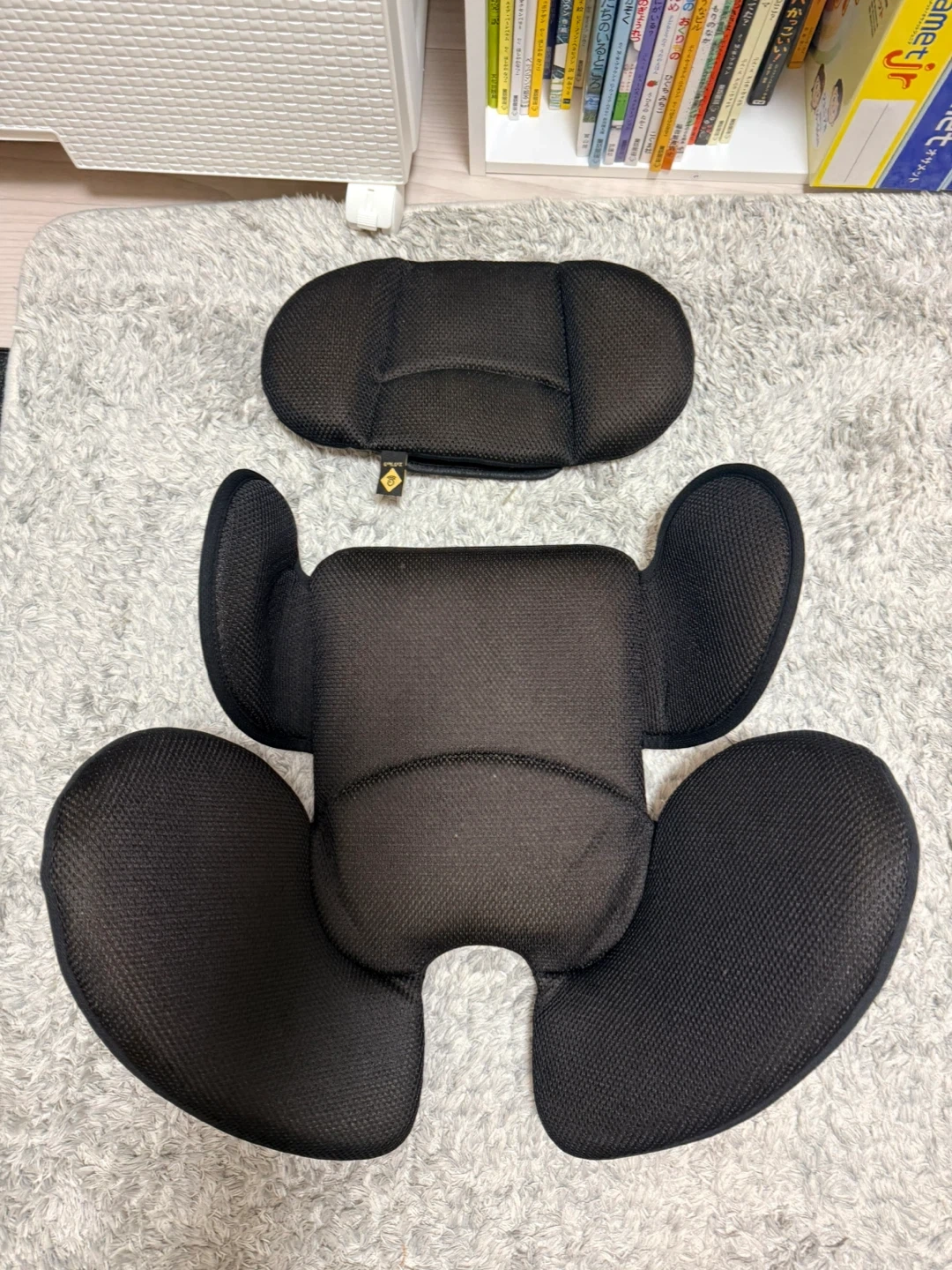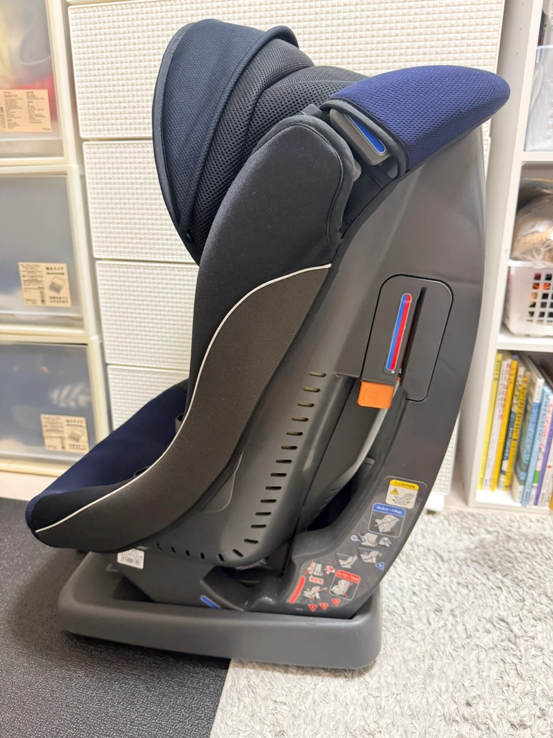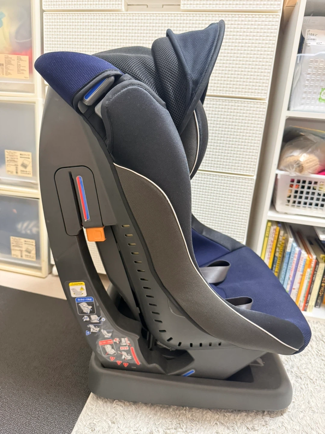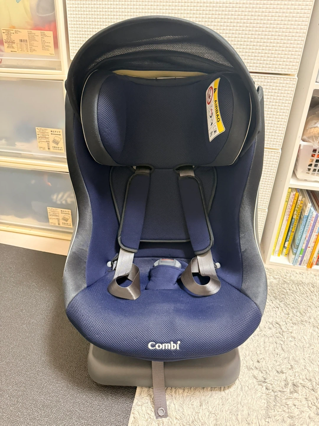コンビのチャイルドシートです 製品名: ウィゴーグランデ サイドプロテクション エッグショック DK 製品URL: https://www.combi.co.jp/store/endcarseat/wego/g/g117602/?srsltid=AfmBOoqQS5h3O15ASczpsXOg-Wvy3Y0PLCWRgX62d4MPBB_81OlBR6Za レンタカー利用時にのみ使用しておりました。 トータルで10回程度しか利用しておらず、また子供を本商品に乗せているとき、お漏らしもしたことがないので、清潔感を保てていると思います。 車特有の匂いがついてる程度です。 ・色:ネイビー ・使用感少なめ ・全体的にきれい ・説明書有り 写真6枚目は、お子さんの体重が7kg未満の時に使用する付属のインナークッションになりますが、こちらは未使用になります。 製品ホームページによると、適応は「新生児〜4歳頃(適応体重18kg以下)」と記載がありますが、実際使用すると3歳ぐらいが最大にも思えます。 中古品であることご了承ください。 破損など見られず正常に使用できますが、ご購入後は自己責任でご使用ください。