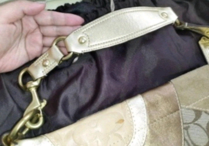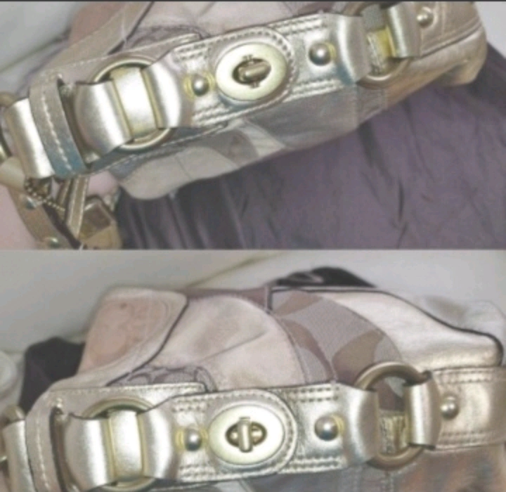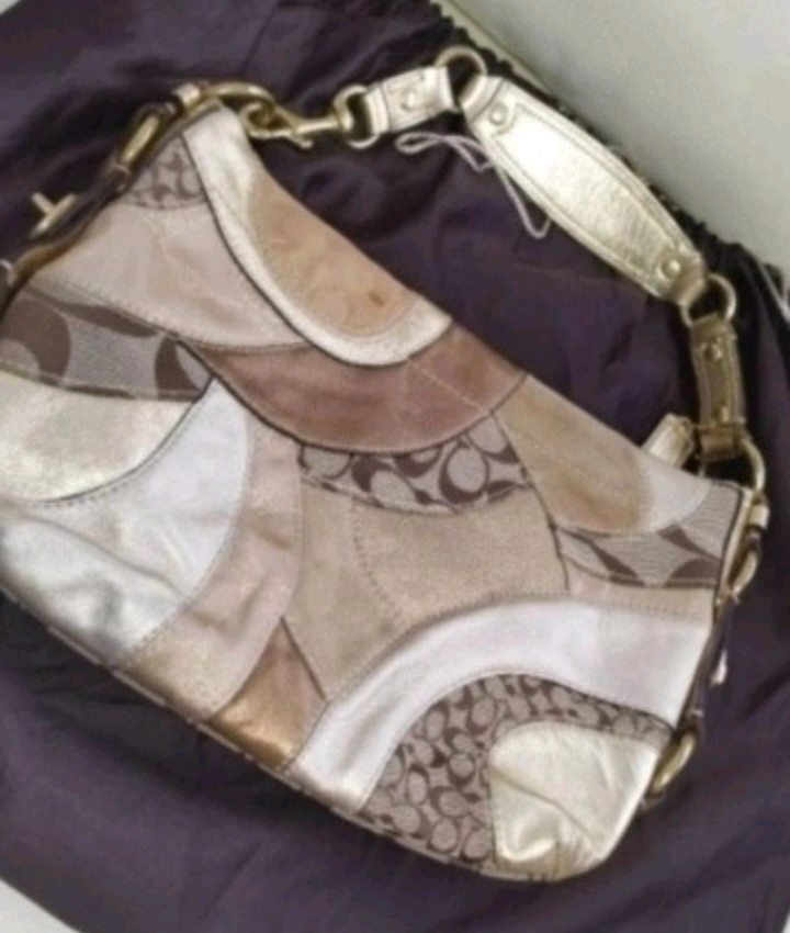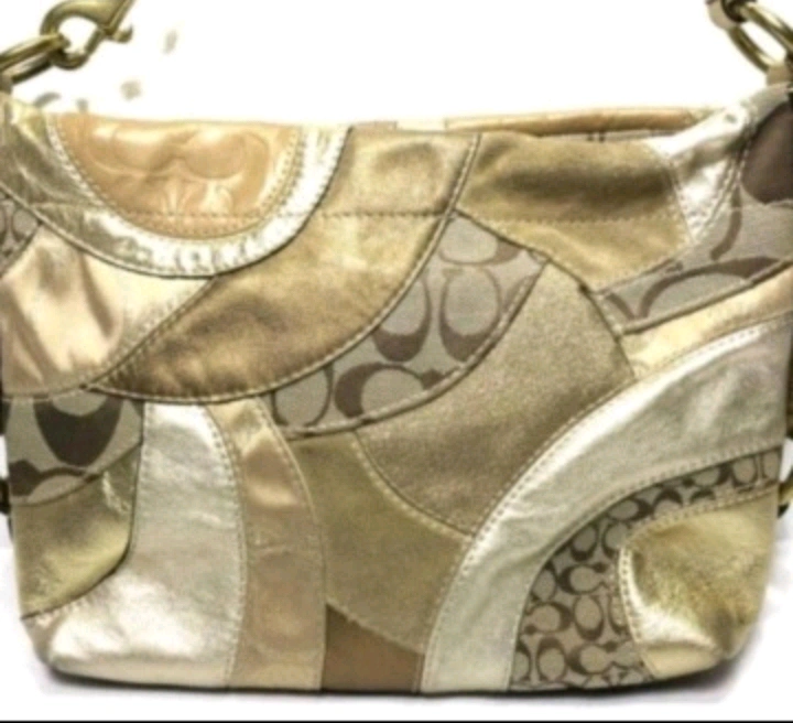 コーチCOACH金色パッチワークシグネチャーバッグお洒落パーティー高級エレガント