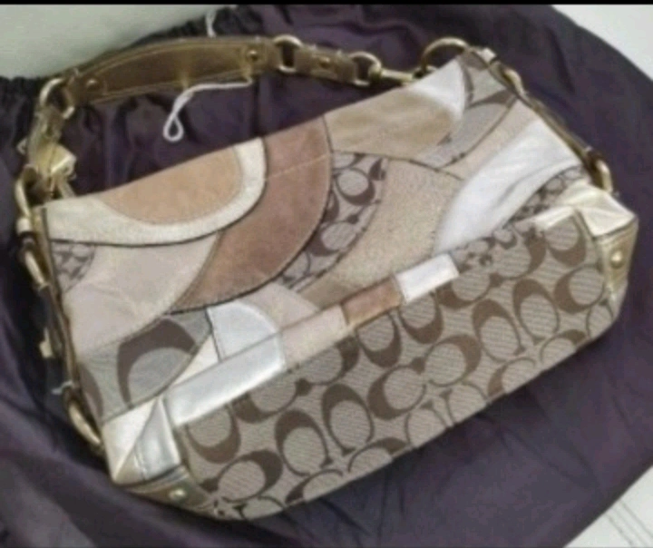 COACH コーチのショルダーバッグです。 パッチワークのようなデザインがお洒落で、持ち手のゴールドが夏らしいです。 華やかなバックで、コーディネートのアクセントとなります。 目立つ汚れや痛みはございませんが、画像3枚目に、1箇所シミがあります。 金具は概ね綺麗です、よ〜く見ると小キズがある程度です(画像でご確認をお願い致します。) 気になる箇所ございましたら、写真アップしますので、チャットよりご連絡くださいませ。 【ブランド】コーチ 【商品名】パッチワークシグネチャー 【カラー】ゴールド✕スエード✕マルチ 【素材】レザー✕スエード 【仕様】外側:ポケットなし 内側:オープンポケット×1、オープンポケット×2 【サイズ】H約23cm×W約25.5cm×D約7cm 持ち手:約45cm 【付属品】保存袋 ハンドバック ショルダーバック