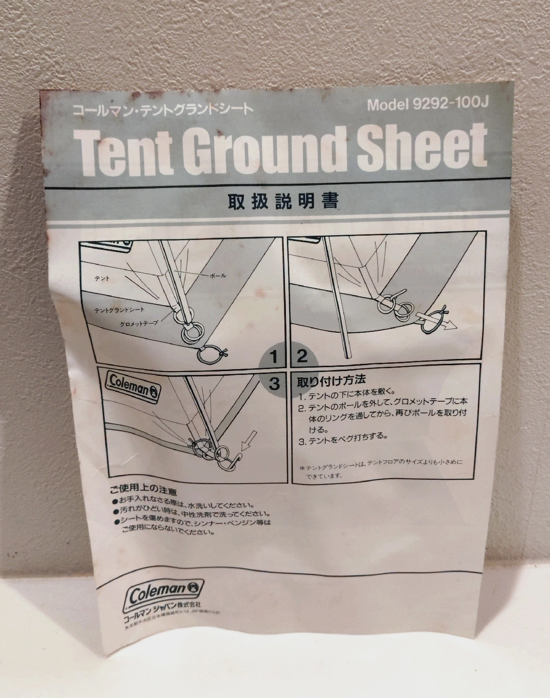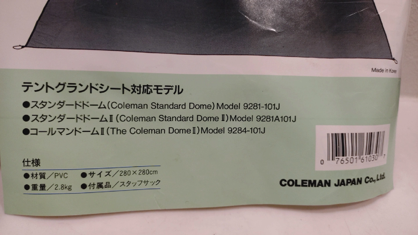 コールマンのテントグランドシートです 【情報】 ブランド:コールマン 商品:テントグランドシート 型番:9292-100J サイズ:280×280cm 重量:2.8kg 【状態】 使用感あり、小さなキズがいくつかあります 【付属品】 スタッフサック 未使用ですが 周りのビニール袋を写す為に今、開けました 長年、空調効いてる倉庫で保管していましたが今年の6月に全部持ってきました 多少、使っていなくても変色が写真の部分にありました それでも構わない方がご購入下さいませ