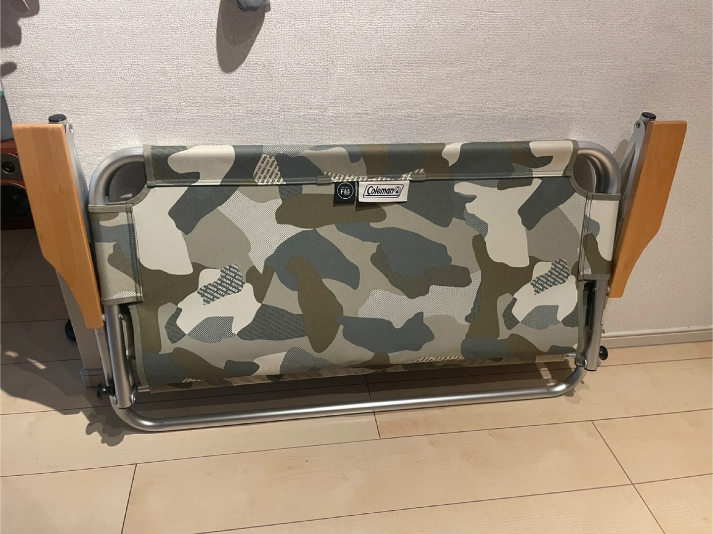 コールマンとCITY CREEKコラボのチェアです ColemanのCITY CREEKは、アウトドアシーンに最適なベンチです。信頼性の高いブランドが提供する製品で、耐久性と快適さを兼ね備えています。 2人用のサイズで、キャンプやピクニックなどのアウトドア活動に最適です。迷彩デザインが特徴で、自然の中でも馴染みやすいデザインです。 【情報】 ブランド:コールマン コラボ:CITY CREEK カラー:迷彩柄 【状態】 小さなシミあり 使用感は少なめ 中古品であることご了承ください