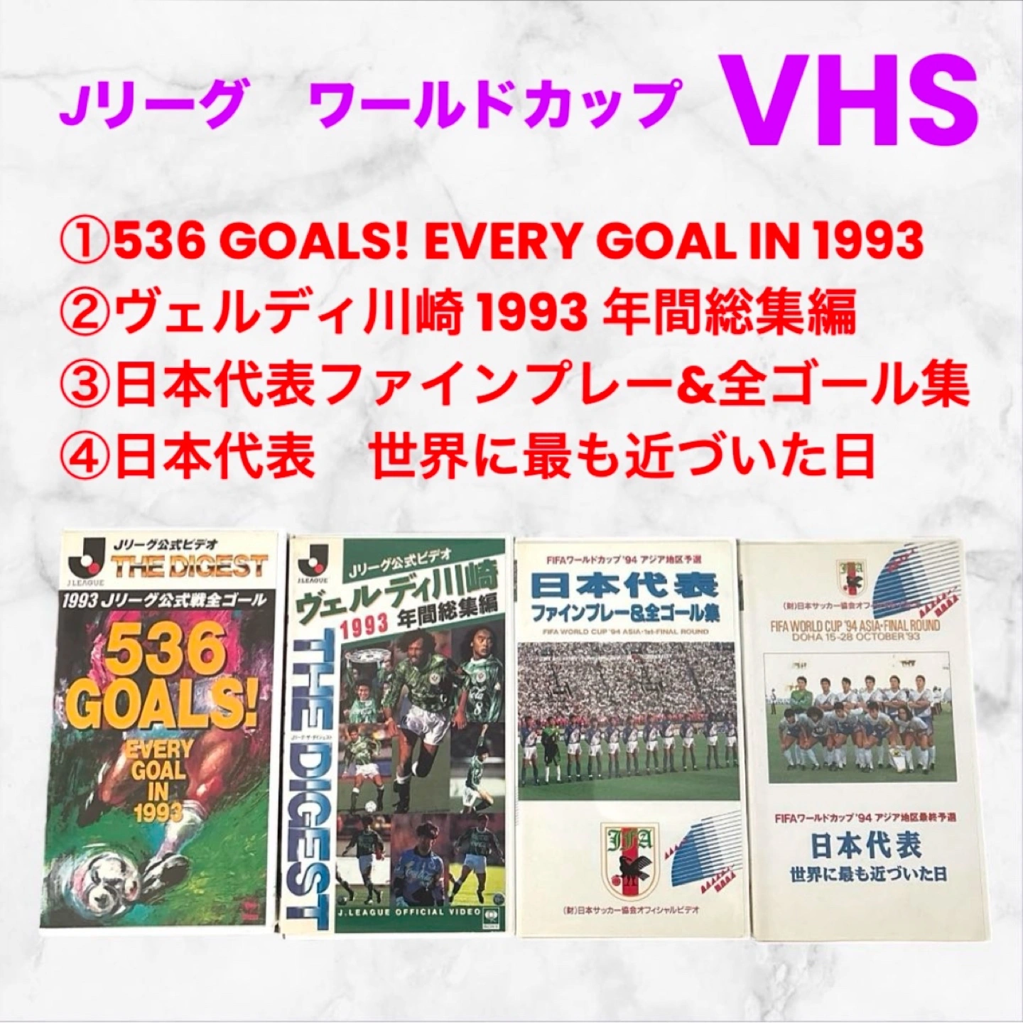 サッカー VHS 4本セット まとめ売り Jリーグ ワールドカップ ①Jリーグ公式ビデオTHE DIGEST 1993年 Jリーグ公式戦全ゴール 「536 GOALS! EVERY GOAL IN 1993」 【商品概要】 1993年のJリーグ公式全ゴールを収録したビデオテープです。536ゴールを網羅しており、サッカーファンには必見の内容です。 【特徴】 このVHSは、Jリーグの公式記録として、当時の試合のハイライトや重要な瞬間を収めています。特に、サッカーの歴史を振り返る上で貴重な資料となるでしょう。 ②Jリーグ公式ビデオ THE DIGEST 「ヴェルディ川崎 1993 年間総集編」 【1993年のハイライト】 このビデオは、ヴェルディ川崎の1993年シーズンの試合を集めたハイライト集です。Jリーグの公式ビデオとして、当時のプレーや選手の活躍を楽しむことができます。 ③FIFAワールドカップ'94 アジア地区予選 「日本代表ファインプレー&全ゴール集」 【イベントのハイライト】 このVHSは、FIFAワールドカップ'94 アジア地区予選における日本代表のファインプレーと全ゴールを収めた貴重な映像集です。サッカーファンにはたまらない内容となっています。 ④FIFAワールドカップ'94アジア最終予選 「日本代表 世界に最も近づいた日」 【試合映像】 FIFAワールドカップ'94アジア最終予選における日本代表の試合映像を収録。日本サッカーの歴史的瞬間を振り返ることができます。 【サポーターの情熱】 試合中のサポーターの熱気や応援の様子も収められており、当時の雰囲気を体感できます。 全て1度視聴しただけです ケースにいれたまま保管してましたが、現在は機械がない為、動作確認できません。 ご理解のうえご購入ください! 他サイトでも出品中です。 他で売れた場合、急に削除しますので、ご了承ください