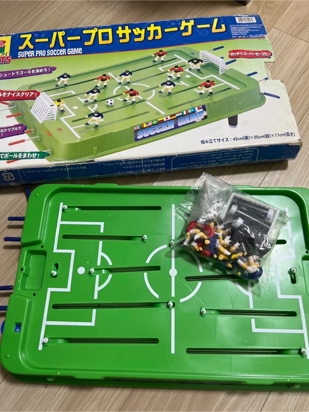 サッカーボードゲーム⚽️ 組み立てサイズ:42cm(横)×25cm(縦)×11cm(高さ) 状態: 傷ありますが壊れている箇所はなく 問題なく使用できます。 状態良くないですが箱あり。 付属品全て揃ってます。