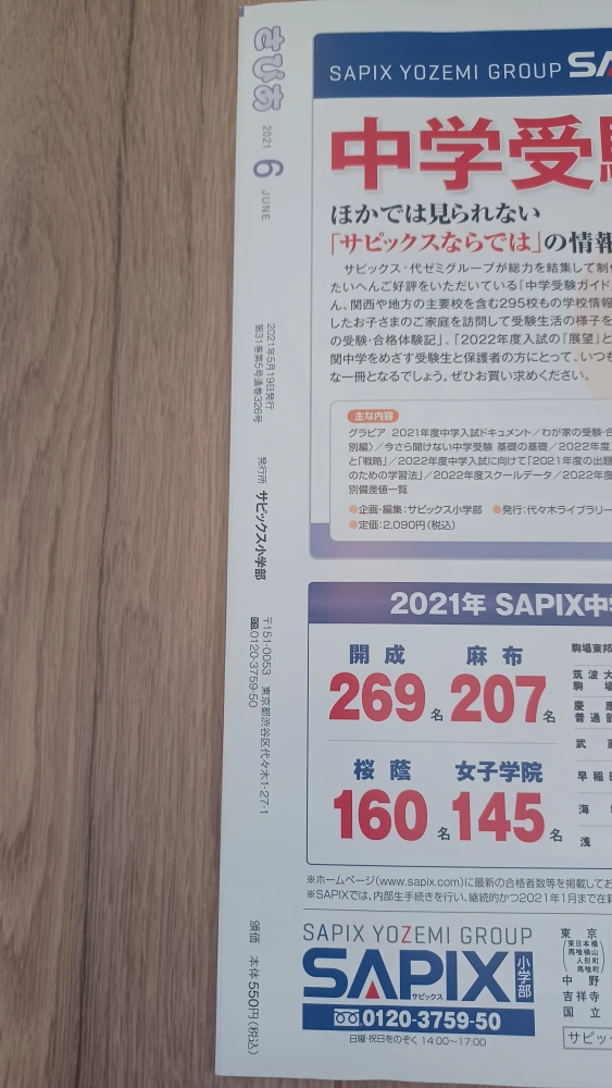 サピックスの塾情報誌です ・2021年6月号 ・使用感少なめ 中古品であることご了承ください