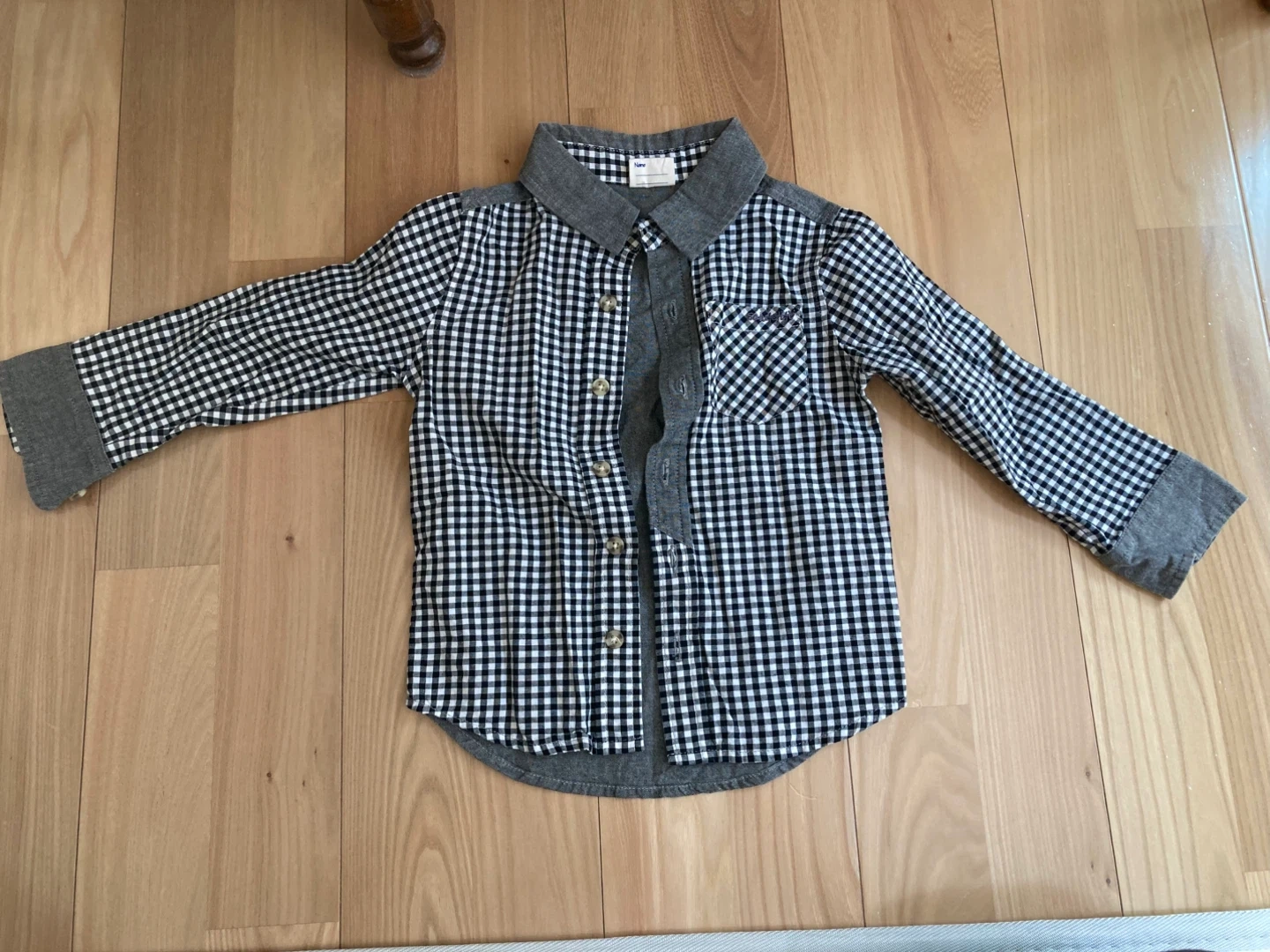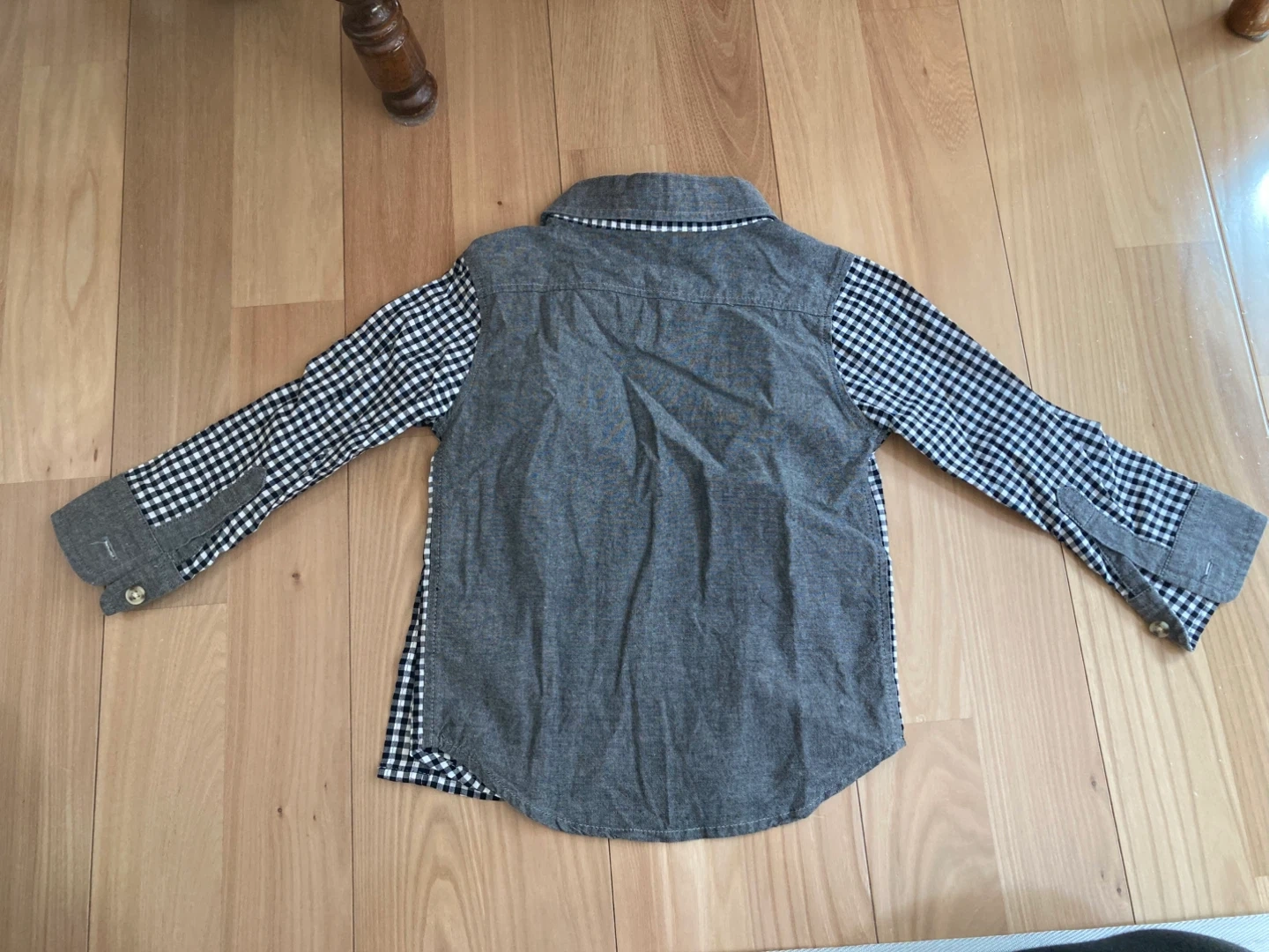 サルートティティのシャツ100サイズです ・サイズ:100cm ・色:白と黒のチェック柄、グレー ・品番:ST-2664 ・使用感少なめ 3回使用済み 中古品であることご了承ください