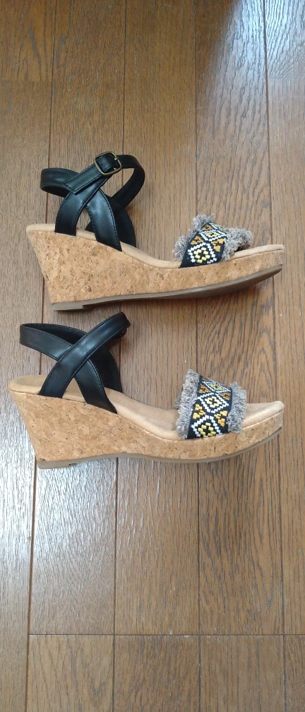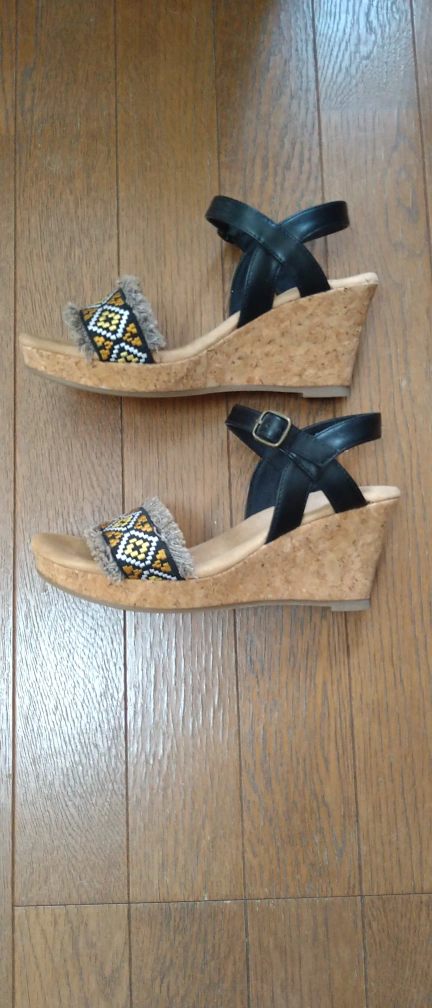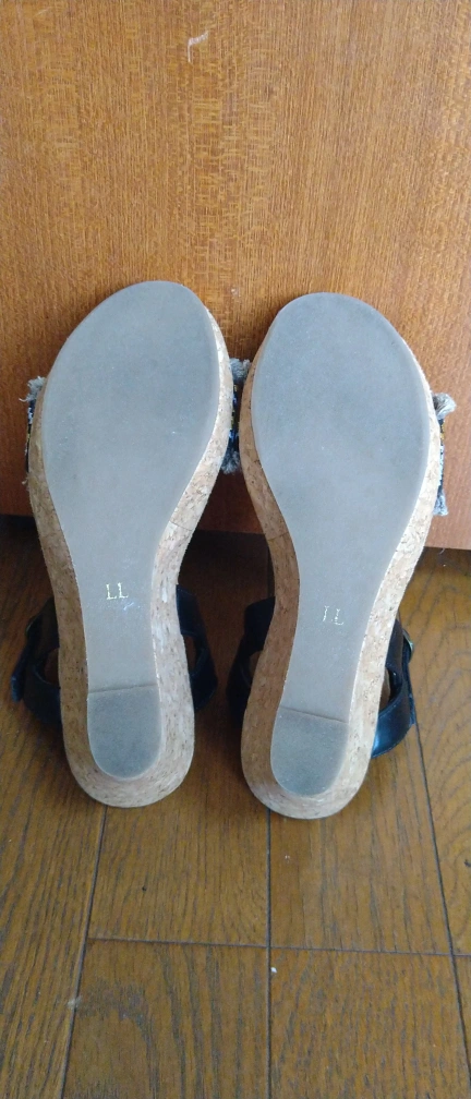 ご覧になって頂きありがとうございます。 ブラック&グレー刺繍のサンダルで、かかとはコルクですので軽く、コンソールも低反発となっているので履き心地が良いです。 ヒールは8cmで、脚を綺麗に見せてくれます。 1.2度履きましたが、私の足には合わなかったため自宅保管していました。 サイズはLLと記載があります。 私は24.5cmです。 自宅保管の為ご理解いただける方でお願いいたします。 色や寸法サイズなどご質問大歓迎です。 受け渡し場所はご相談可。
