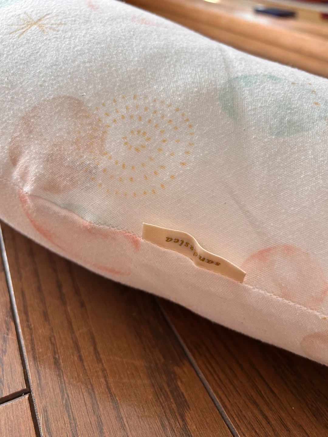サンデシカの抱き枕です。 ・色:白地にピンクと水色の水玉模様 ・ブランドタグあり:sandesica ・使用感あり 中古品であることご了承ください