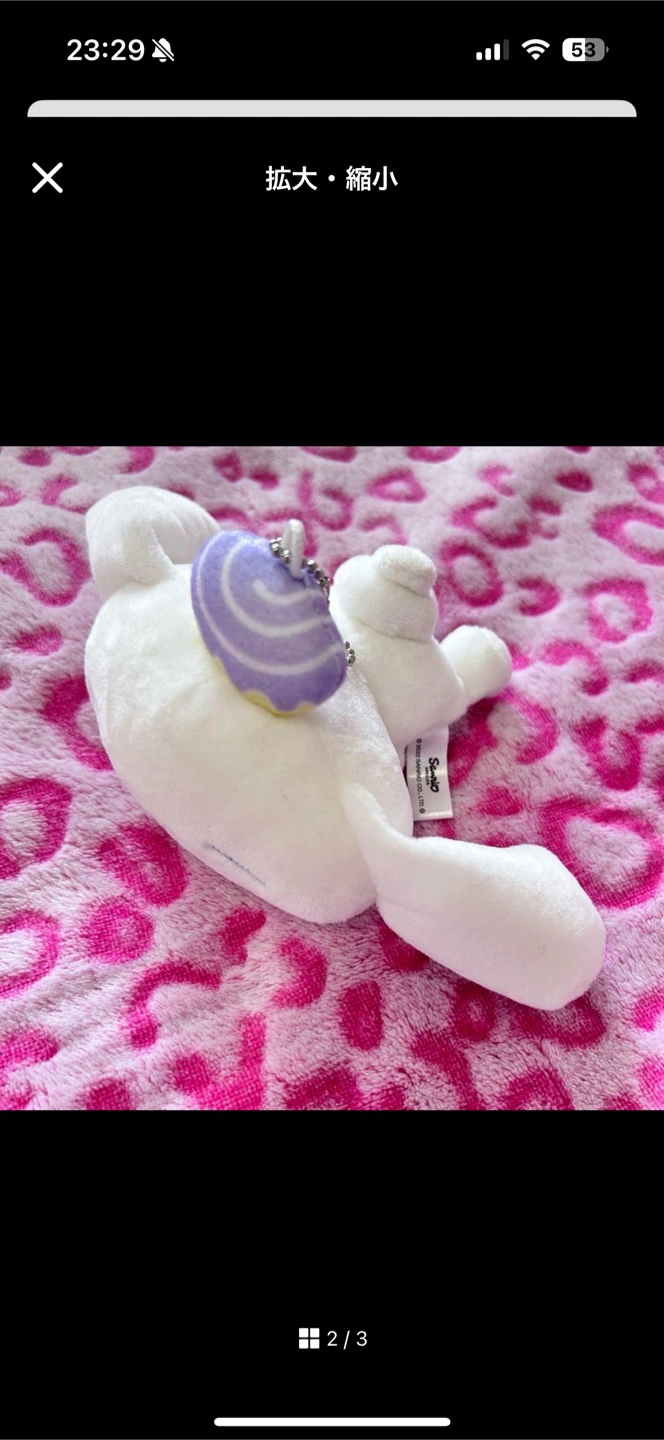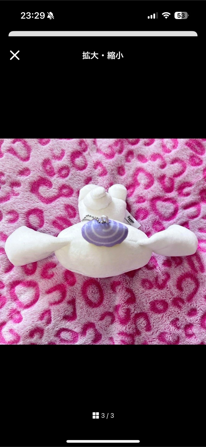 サンリオピューロランドのカーニバルゲームの景品です。 一度も使用せずに保管していたため状態は良いです。 ・シナモロールのぬいぐるみ ・貝殻付き ・全体的にきれい