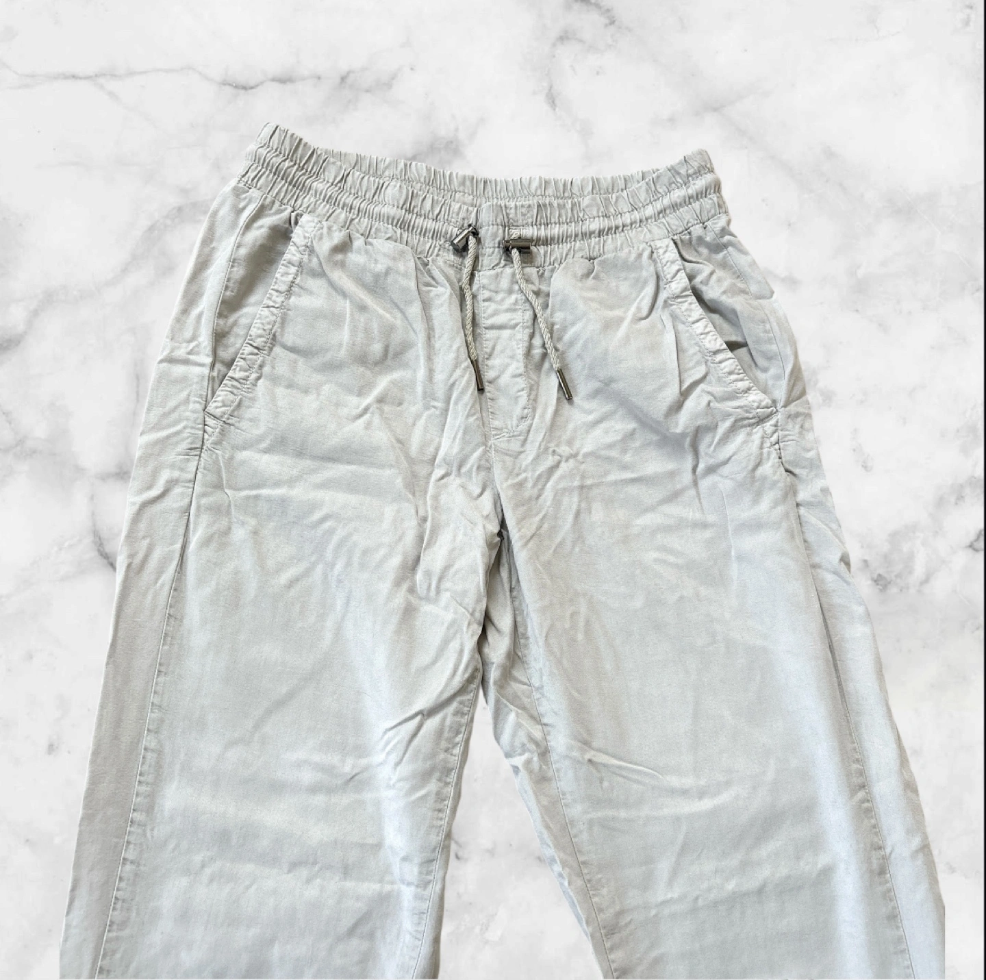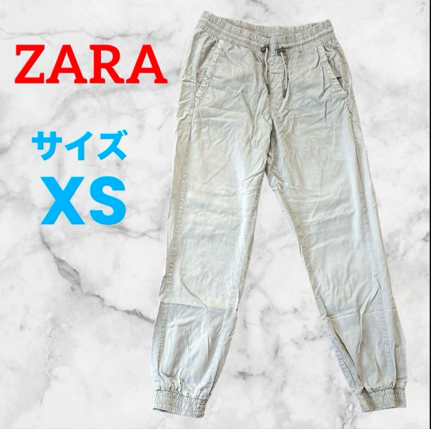 ZARA ジョガーパンツ ズボン ボトムス ☆レディース ☆カラー…ライトグレー ☆サイズ…XS(USA) ☆ウエストタイプ…ゴムウエスト ☆ポケット…サイドポケットあり 【ブランド】 ZARAのジョガーパンツは、スタイリッシュでありながら快適な着用感を提供します。 【デザイン】 ライトグレーの色合いが特徴で、さまざまなコーディネートに合わせやすいアイテムです。ゴムウエストと調整可能なドローストリングにより、フィット感を調整できます。 【機能性】 サイドポケットがあり、実用性も兼ね備えています。カジュアルな日常使いやリラックスタイムに最適です。 畳みジワや裾部分に多少の汚れありますが、破れ等はないので、まだまだ着用いただけます 他サイトでも出品中です。 他で売れた場合、急に削除しますので、ご了承ください