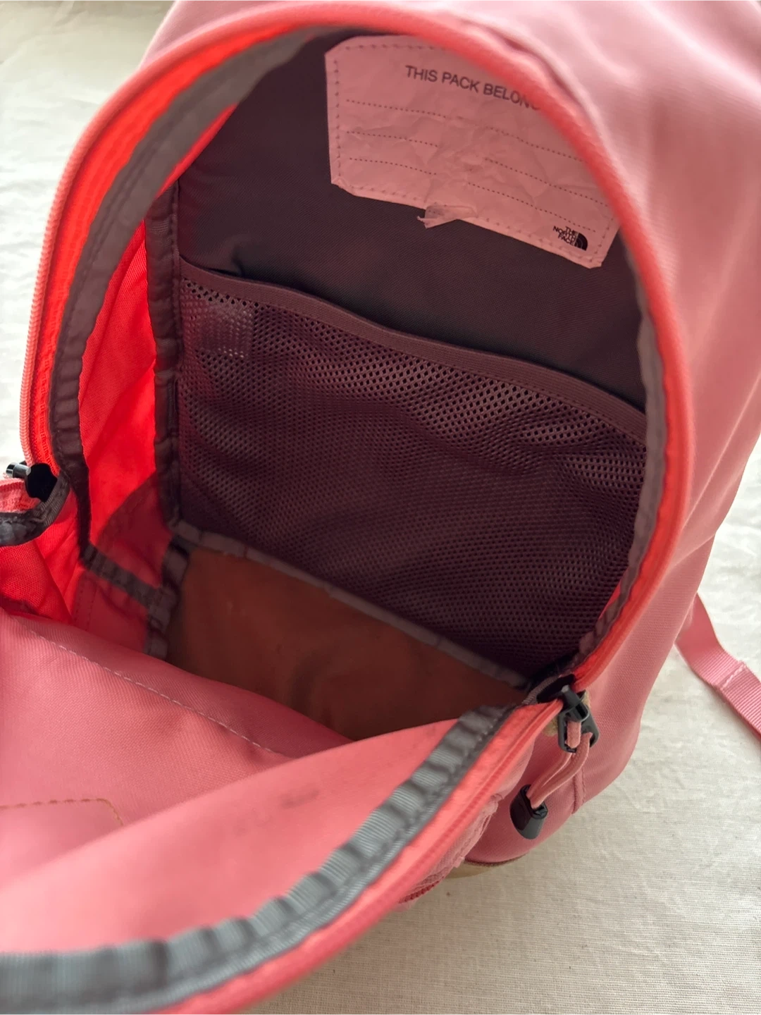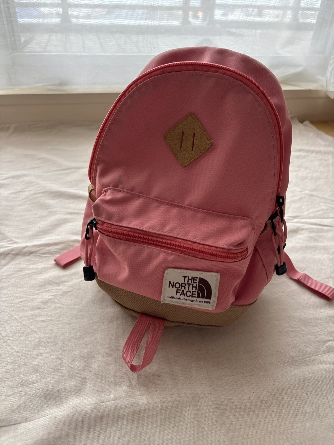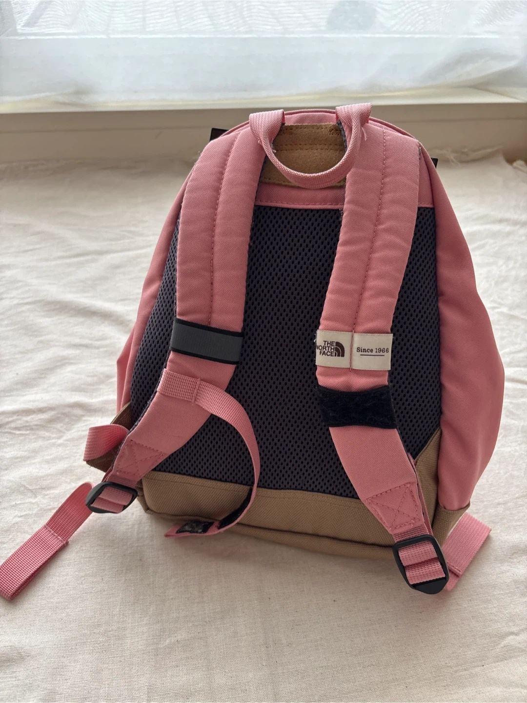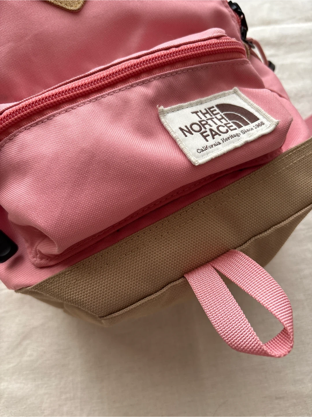 ザ・ノース・フェイスのリュックです 【情報】 ブランド:ザ・ノース・フェイス 型番:NMJ71752 カラー:ピンク、ベージュ 容量7リットル 【状態】 まだまだ活躍できるお品物ですが、 写真5枚目(薄いシミあり) 6枚目(小さな小傷あり) 中古品であることご了承ください