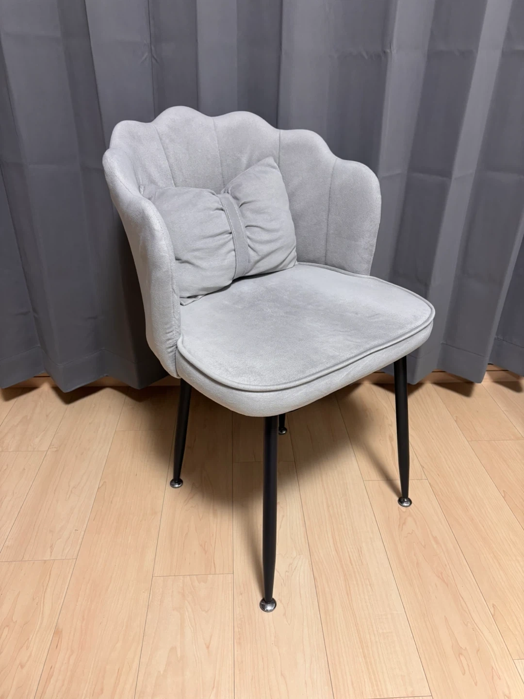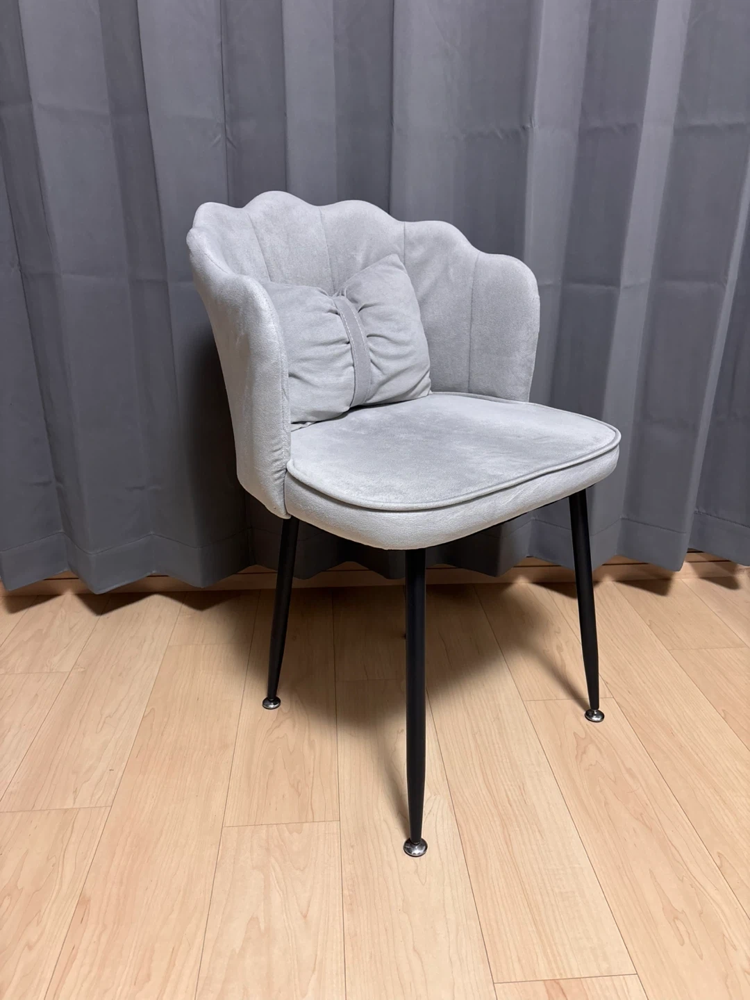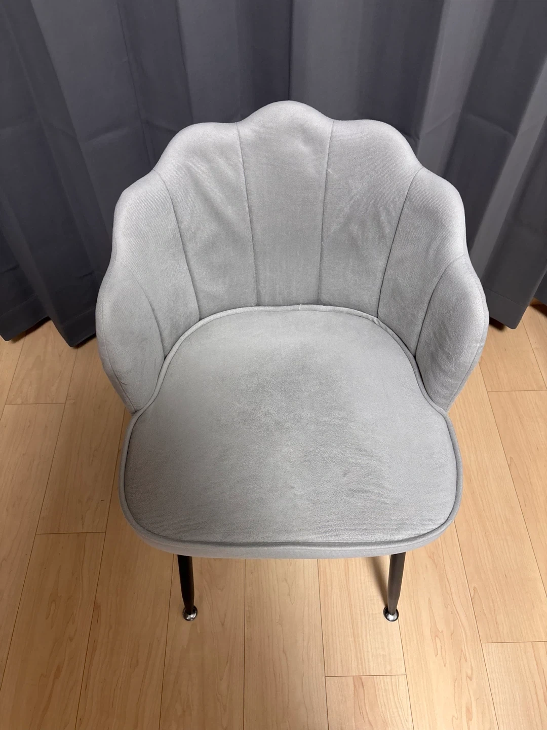 あたたかさグレーのシェル型チェアです 値段交渉可能です! ・カラー:グレー ・サイズ:約56cm x 63cm x 81cm(画像参照) ・脚の色:ブラック ・状態:使用感少なめ 中古品であることご了承ください