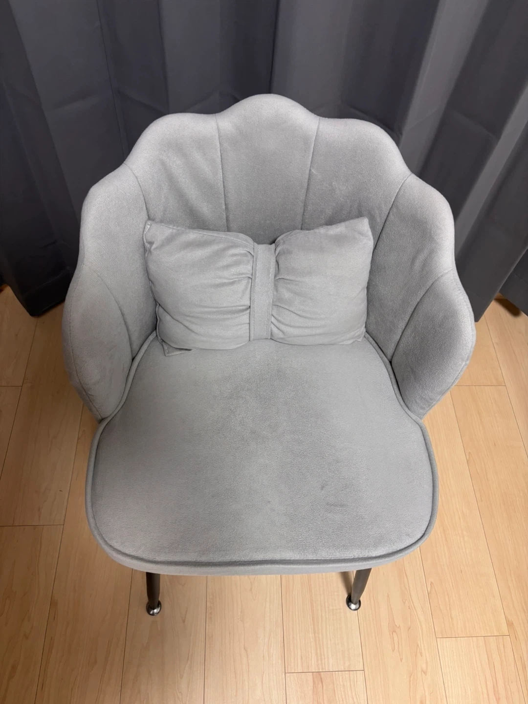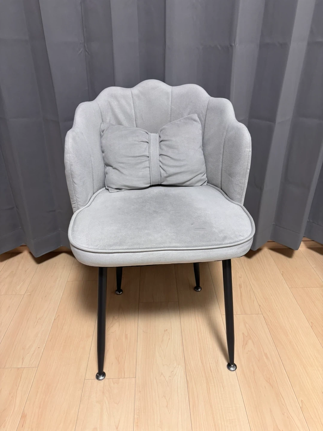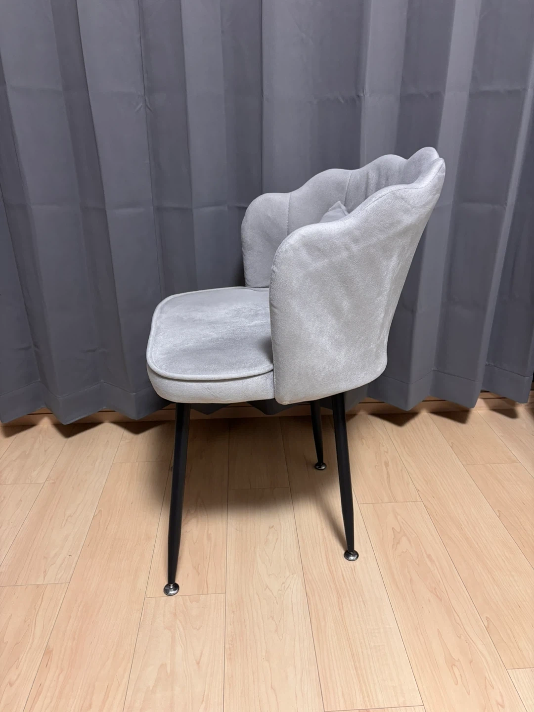 あたたかさグレーのシェル型チェアです 値段交渉可能です! ・カラー:グレー ・サイズ:約56cm x 63cm x 81cm(画像参照) ・脚の色:ブラック ・状態:使用感少なめ 中古品であることご了承ください