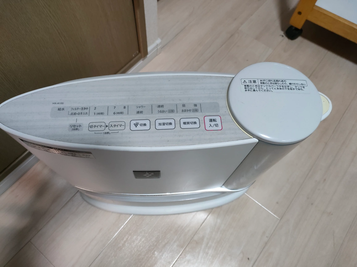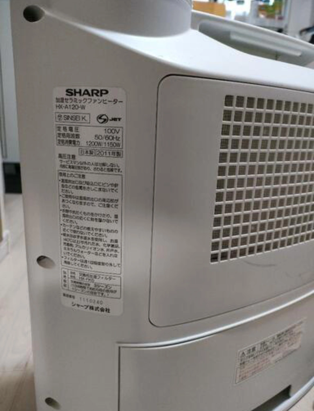 シャープ SHARP 加湿セラミックヒーター 高濃度プラズマクラスター7000搭載 ホワイト系 HX-E120- 結局使ってなかったものを処分しております 取扱説明書はありません 短時間ですが動作確認済 温風出ます 加湿します 持ち上げると安全装置が働くのかエラー音なって停止するので、電源入れ直す必要あります 最初、故障かと思いびっくりしたので記載しておきます 【高性能加湿機】 SHARPのHX-E120-Wは、強力な加湿機能を備え、快適な室内環境を提供します。 【省エネ設計】 消費電力は1200W/1150Wと効率的で、電気代を抑えながら使用できます。 【シンプルなデザイン】 ホワイトカラーの洗練されたデザインで、どんなインテリアにもマッチします。 - ブランド: SHARP - 型番: HX-E120-W - 電圧: 100V - 周波数: 50/60Hz - 消費電力: 1200W/1150W - デザイン: 置き型加湿器 - 色: ホワイト 中古品になるため、ご理解いただける方のみ、お願いします そこそこ古いです