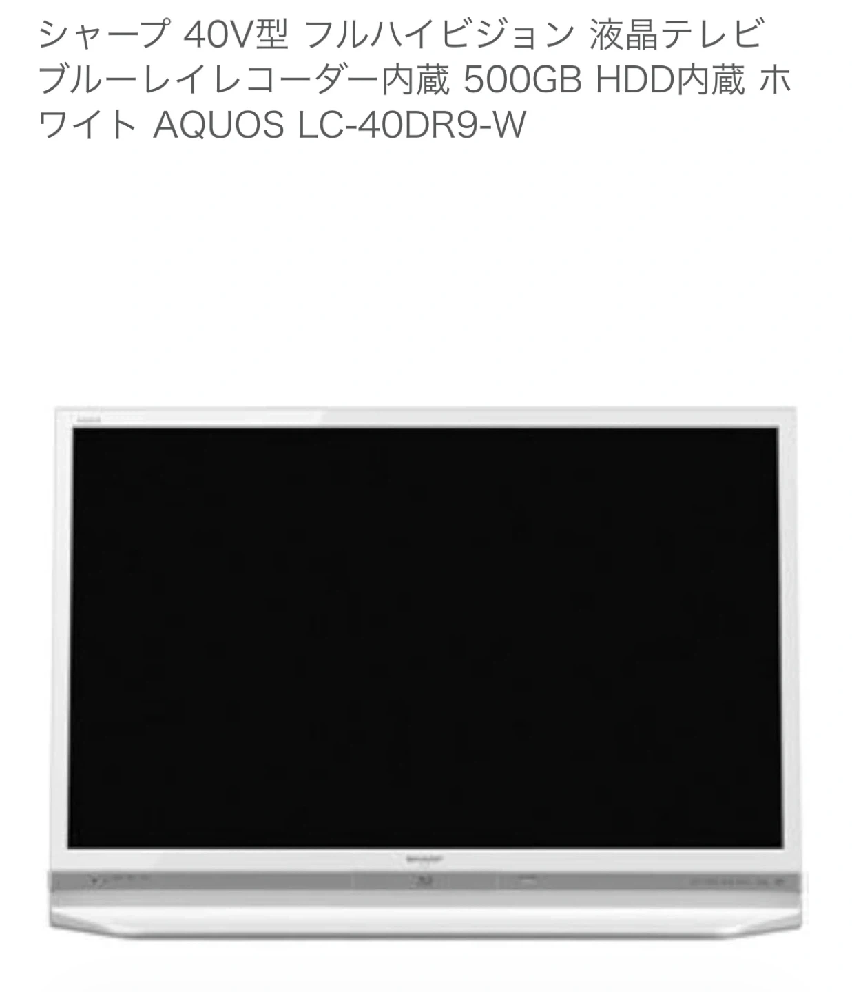 シャープの液晶テレビです 2015年製 動作確認済み   配送料が別途3000円ほどかかります ご指定場所へお届け 【情報】 ブランド:シャープ 商品名:AQUOS 型番:LC-40DR9-W サイズ:40型 内蔵:ブルーレイレコーダー、500GB HDD 色:ホワイト 【状態】 使用感はありますが、目立つキズはありません 中古品であることご了承ください