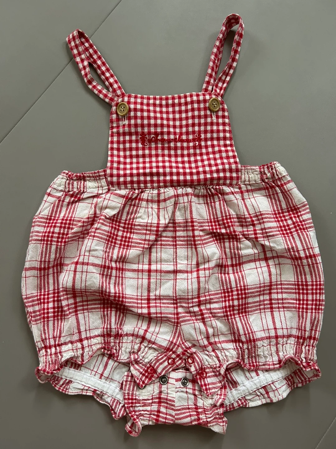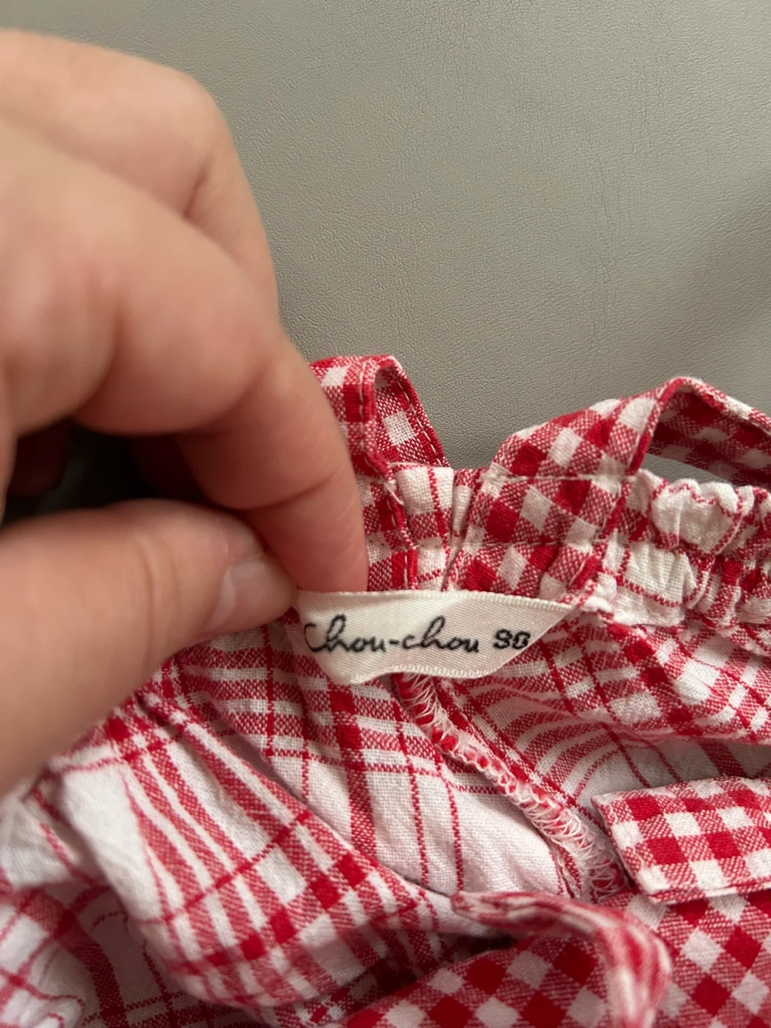 シュシュのロンパースです ・カラー:赤、白 ・デザイン:チェック柄 ・サイズ:90㎝ ・状態:使用感少なめ 中古品であることご了承ください