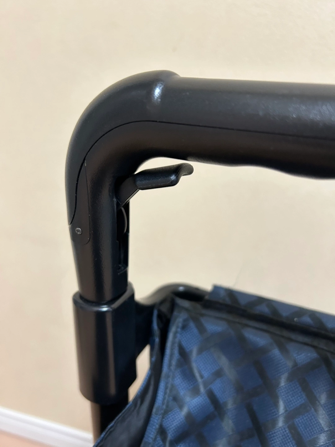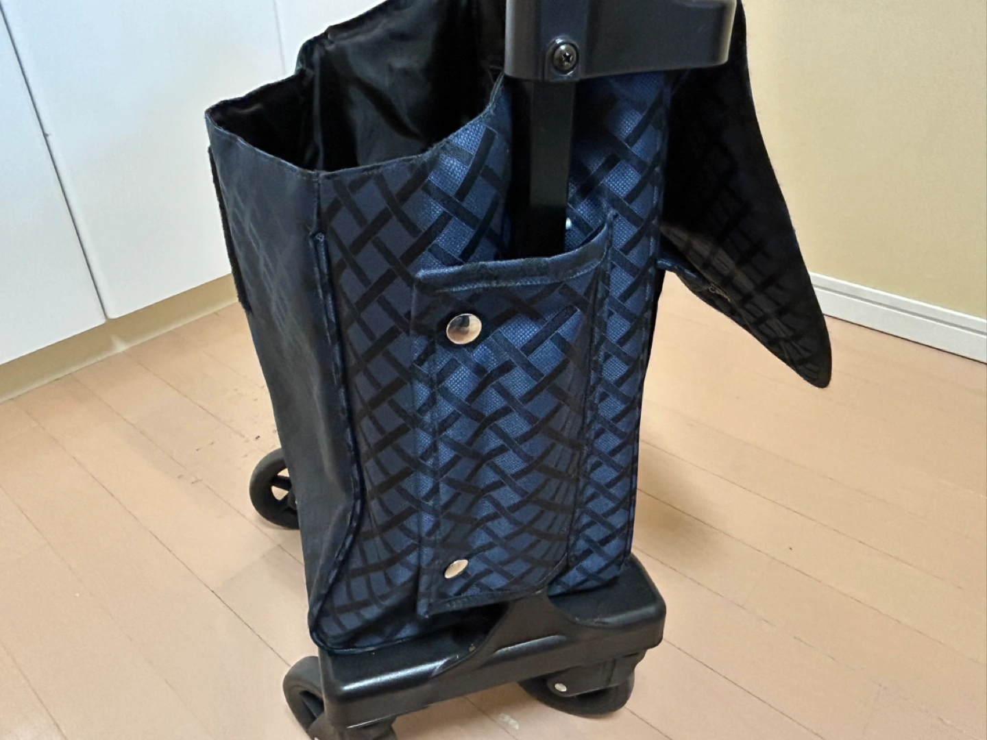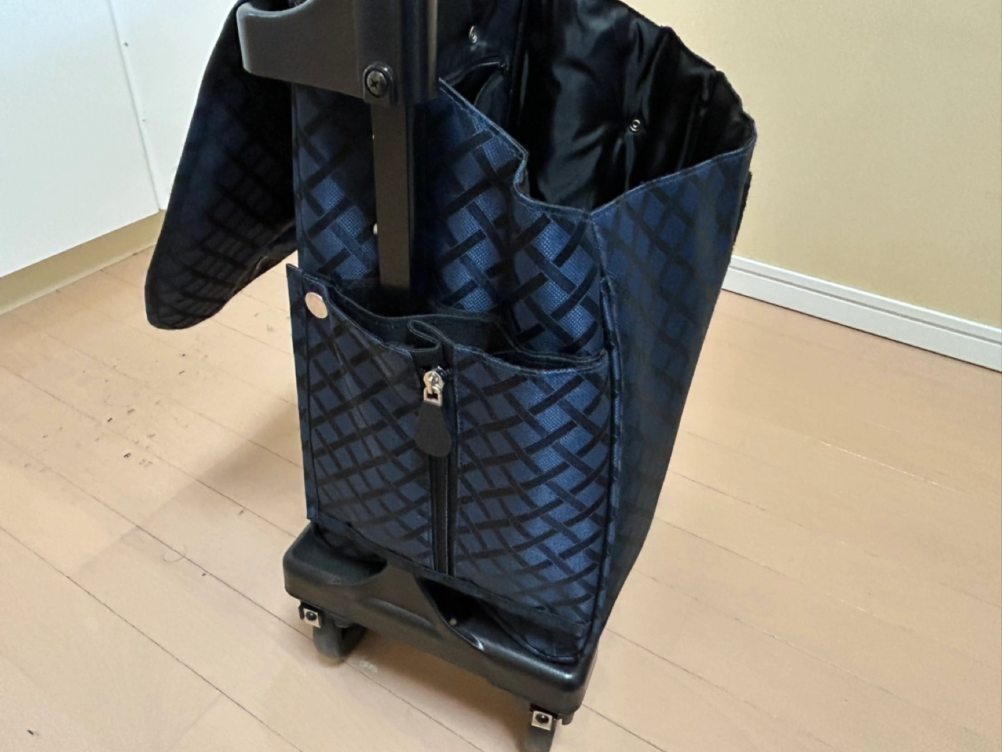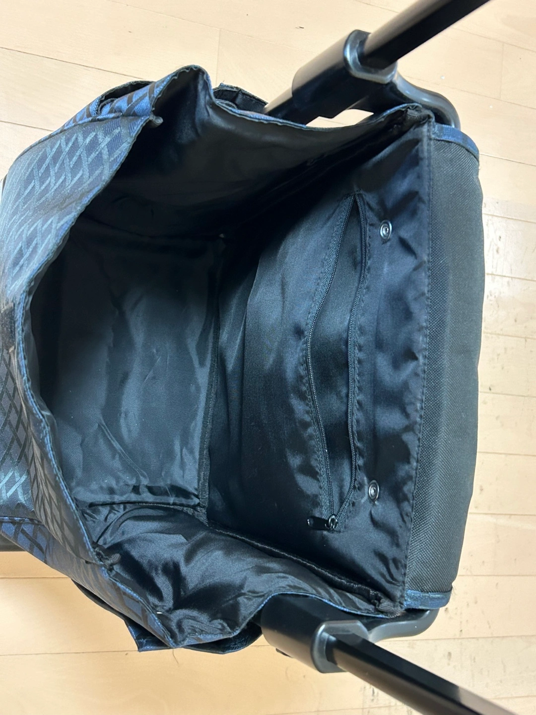 横押し式のショッピングカートです。 とてもしっかりした作りですし、おしゃれな感じだと思います。 日常のお買い物でしたら充分に入り便利です。お米5キロ余裕で入れられます。 バックのサイズと注意事項は10枚目の写真に書いてあります。 高さは 一番高くして(写真1枚目)車輪下から取手まで、約86センチ 一番低くして(写真2枚目)車輪下から取手まで、約65センチ カバンの下の枠が約33×22センチくらいです。 車輪4輪とも360度回転します。 手元に車輪を固定するレバーがあるので、坂などで置いておきたいときにロックできて便利です。 サイドにポケットがあり水筒など入れられます。 外の裏側に大きめポケットあり 中にもジッパー付きの内ポケットあり 見た目も綺麗で大きな傷などありません。 お気軽にお問い合わせくださいね。