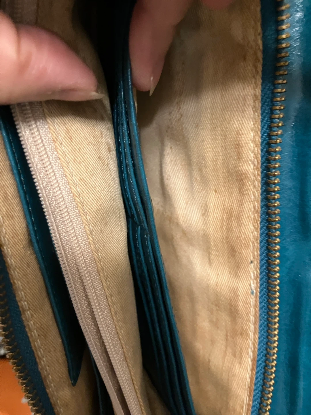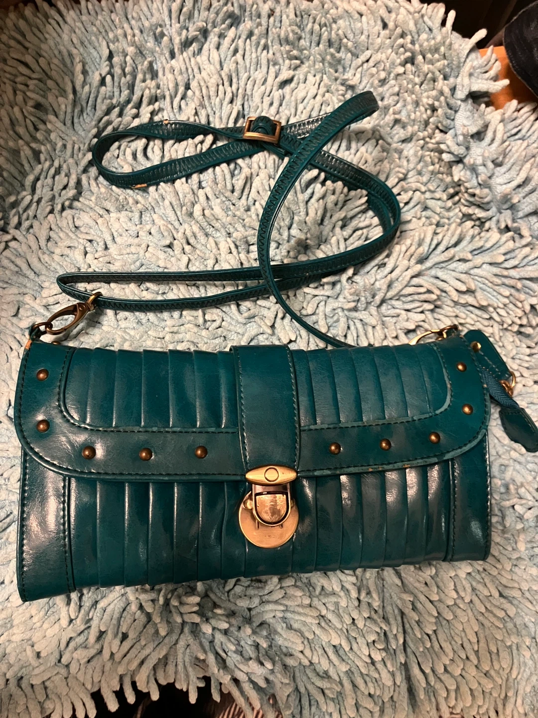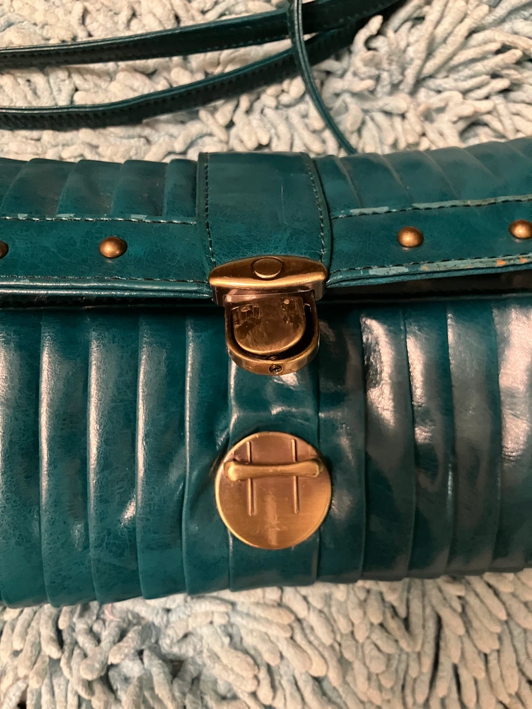 エメラルドグリーンのショルダーウォレットです いただいて1度も使わないまま長期保管しておりました 長期保管のせいで内側などにちょっとシミが出たりしているのですが 通常使用にはそれほど問題がないかと思います ただ、小さな傷などもあるので、何かにお役に立てばと思って出品しました 財布としてはちょっと大きめ。ポーチとしては小さめと言うサイズですが、ショルダー付きです。 ・色:エメラルドグリーン ・ショルダーストラップ付き ・金具部分に若干の変色あり ・角にスレあり ・使用感あり 中古品であることご了承ください