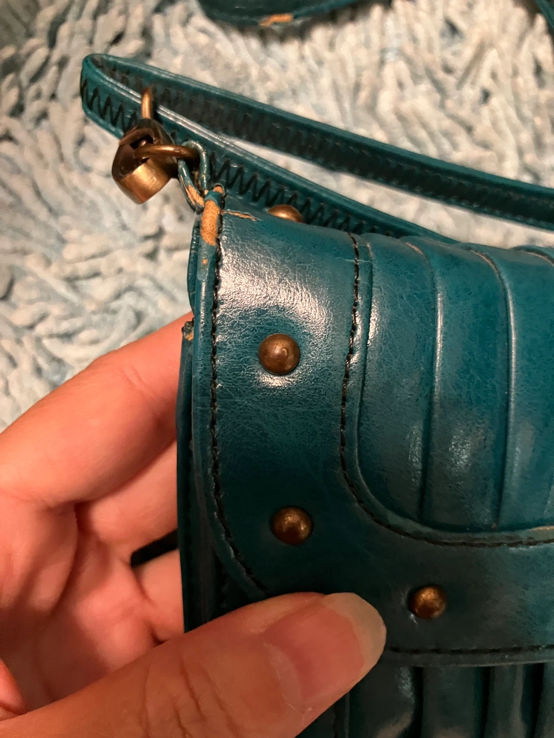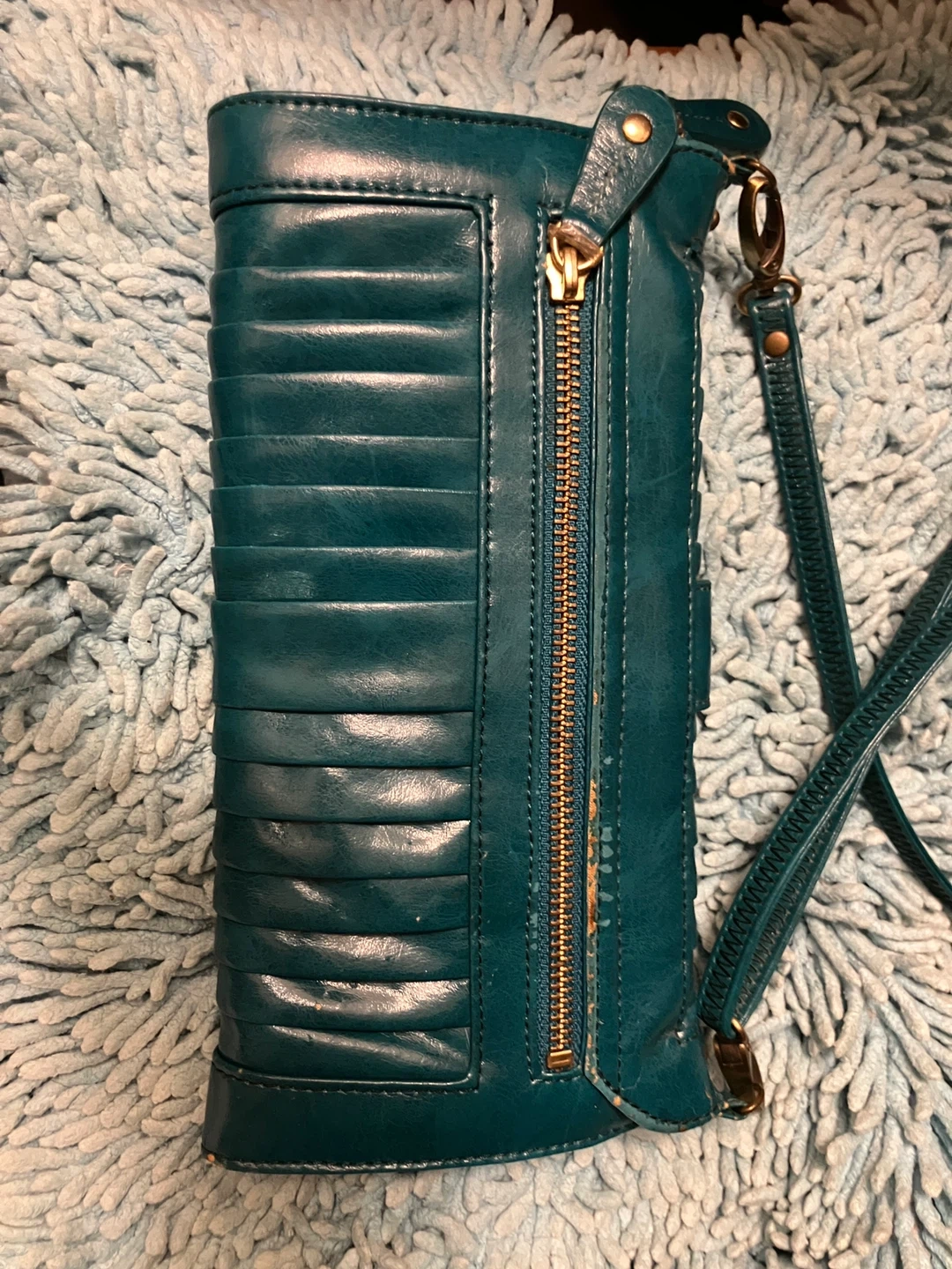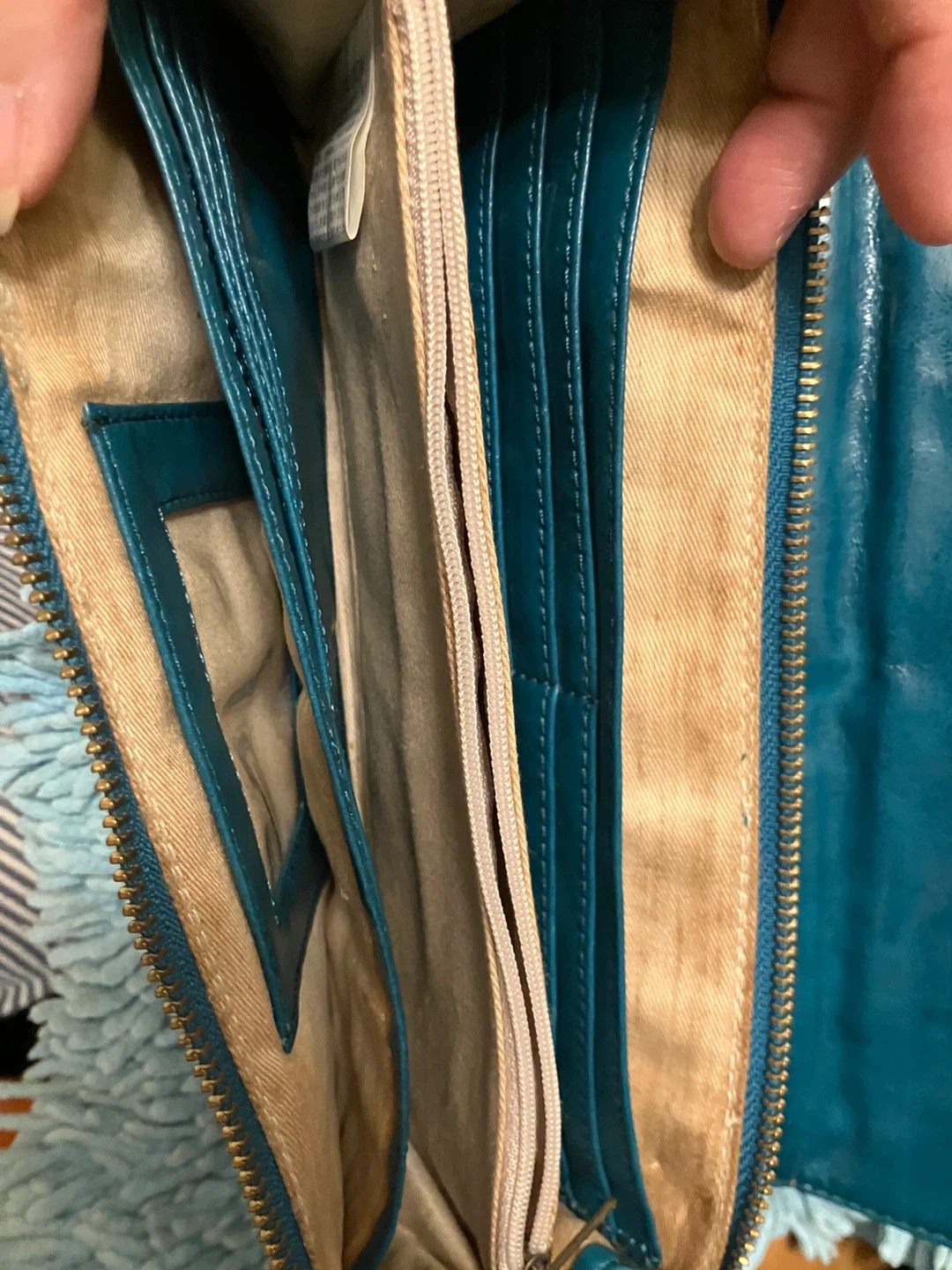 エメラルドグリーンのショルダーウォレットです いただいて1度も使わないまま長期保管しておりました 長期保管のせいで内側などにちょっとシミが出たりしているのですが 通常使用にはそれほど問題がないかと思います ただ、小さな傷などもあるので、何かにお役に立てばと思って出品しました 財布としてはちょっと大きめ。ポーチとしては小さめと言うサイズですが、ショルダー付きです。 ・色:エメラルドグリーン ・ショルダーストラップ付き ・金具部分に若干の変色あり ・角にスレあり ・使用感あり 中古品であることご了承ください