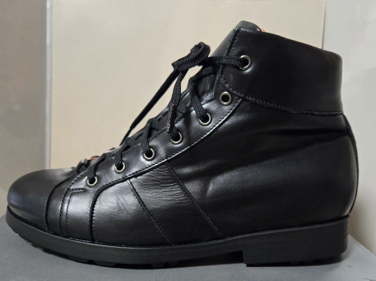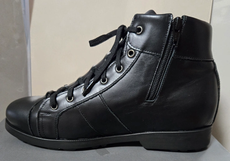 「機能性シューズ+お洒落デザイン+2重牛革の高品質」で、らくらくな履き心地良い商品です。 韓国で機能性専門靴トップメーカーのバロニアシューズです。 クラウドファンディングを行う際に、撮影時にモデルさんが一回だけ履いたもので新品同様ですが6番の画像のように靴の首辺りに剥がれがあります。でも靴首の部分ですので普段はズボンのすそに覆われて見えなくなると思います。クラウドファンディングで32,000円の商品です。 女性・男性共用。 1. 機能性シューズで下記のような方にお勧めします。 ・外反母趾や偏平足に悩まされている方 ・足裏に痛みを感じる方 ・一日中たくさん歩く方 ・通気性・速乾性に消臭・抗菌の機能が揃っている靴を求める方 2. イタリアのボローニャ工法(10番目の画像)  足の形に合わせてUpper(靴の内皮革)とInsole(足の裏が直接触れる部分)をボローニャの返し縫いで繋げた革で一つの袋の枠を完成させ内皮とインソールが一つになる工法です。 3. 特徴 1)身体のバランス維持 足指の配列と角度を正常に改善し体のバランスを立派に保てます。 2)足首と膝への負担を軽減させ、また外反母趾や偏平足・足裏の痛みを抑えます。 3)滑り止め 足指部分に滑り止めの処理、靴のヒールにも滑り止め用のRubber Out Soleを適用し雨の日や濡れた道でも滑って転倒しにくくなります。 4)衝撃吸収・靴の変形防止枠(7番・8番画像) 機能性ミドルソールのポリウレタン高弾性は衝撃吸収の役割を果たせこれで関節と筋肉の衝撃・負担を減らします。また時間と共に靴の横が伸びるような現象を防ぐため、靴の横に特殊な支え枠を設計し本来の靴形態変形や本来機能が崩れることを防止します。 5)通気性・速乾性 靴底面が麻とコルクでできているため湿度の調節と風通しを容易にし、靴の中が蒸れにくいです。 6)消臭・抗毒 靴の内部に入っている麻とコルクで、素早く水分の吸収と排出を促進させ、汗や水分による足の臭いを抑えます。特に麻が持っている抗菌性と抗毒性は、靴の内部を清潔に保つことを助けます。 7)2重牛革の高品質 機能性シューズでは珍しく内皮と外皮共に2重天然牛革で製作されています。 ・サイズ:26Cm ・カラー:ブラック ご覧いただきありがとうございます。