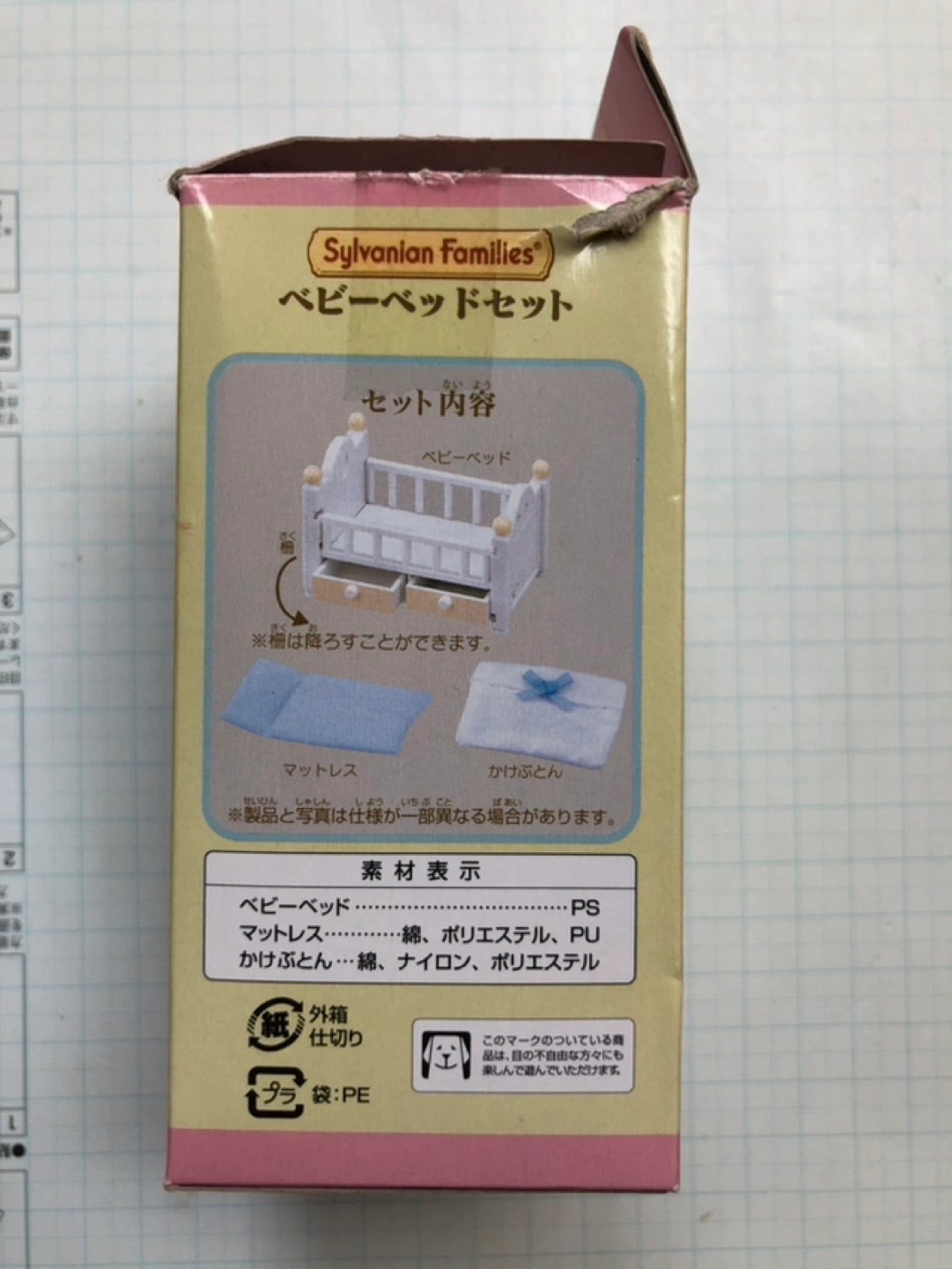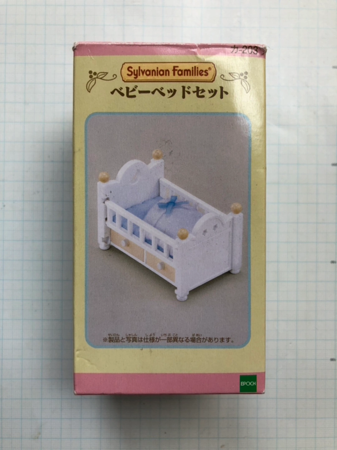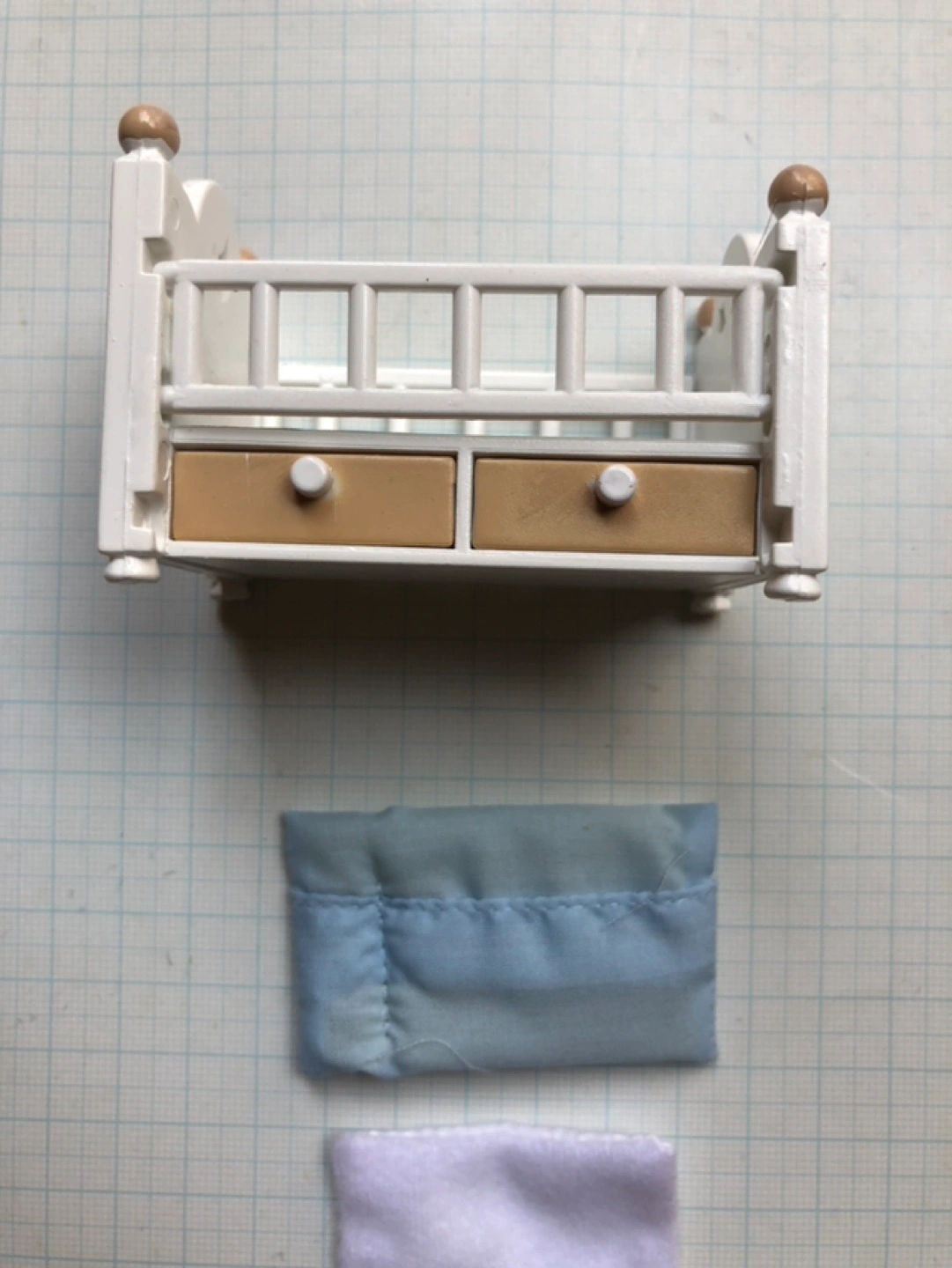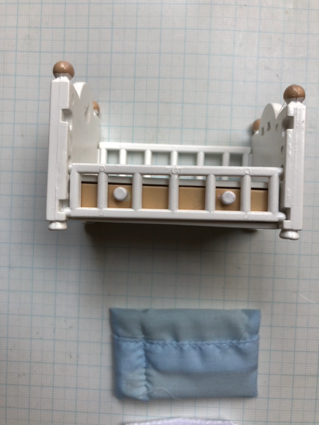 あたたかさシルバニアファミリー ベビーベッドセット 1センチマスの方眼紙の上で撮ってます 使用済み 全て揃ってます汚れ無いです 箱上部1センチ切れ目あり ベッドの柵上下出来ます 宜しくお願います