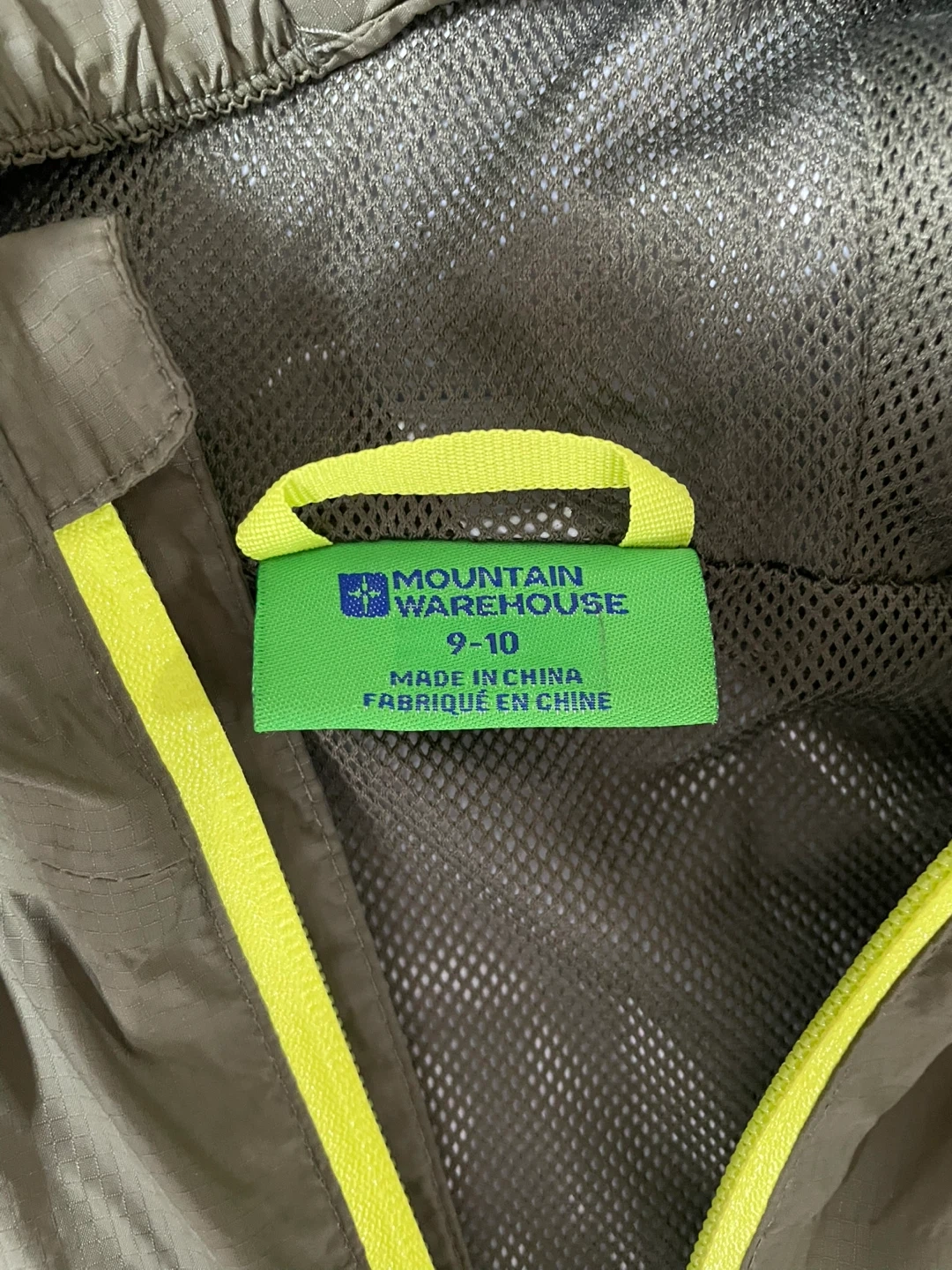 イギリスのMountain Warehouse (アウトドア用品店)で£39.90(≒8000円)で購入。 日本では販売されてないと思います。 品質がよく、かなり丈夫です。 雨の日やスポーツ時に! ・ブランド:マウンテンウェアハウス ・サイズ:9-10才 ・カラー:カーキ ・フード付き ・ジッパー:ネオンイエロー 目立った傷や汚れは特になく、比較的きれいですが、中古品であることご了承ください。