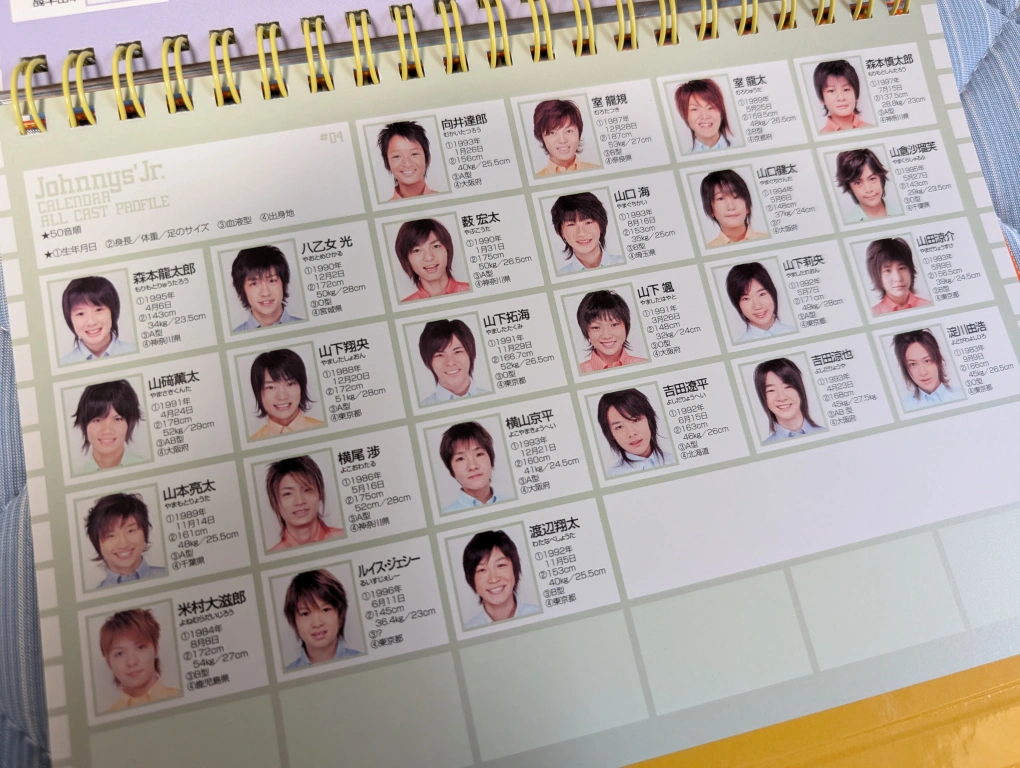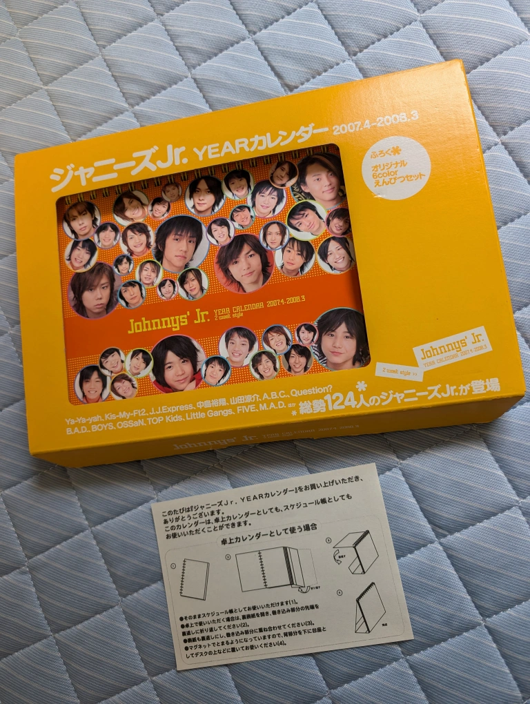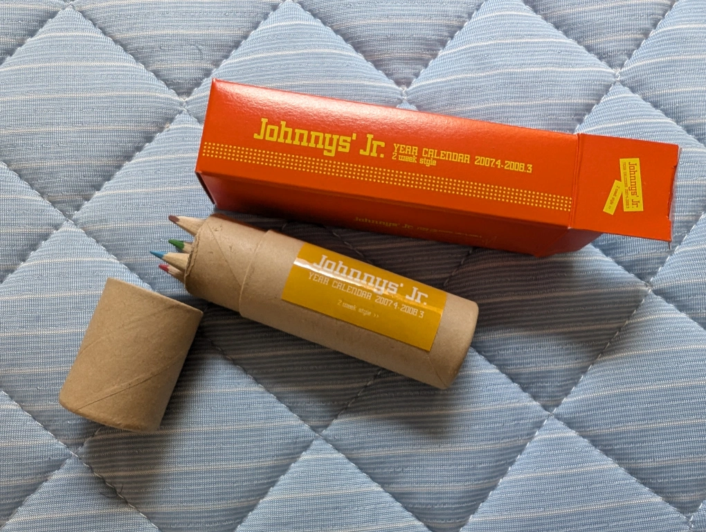 ワニブックス ジャニーズJr. YEARカレンダー 付録オリジナル6カラーえんぴつセット 自宅保管のため、箱などに傷があります。 カレンダーの中身自体は綺麗かと思います。 色えんぴつは少し使用しております。 蓋の開け閉めが固く、無理矢理閉める形になるのでケース(紙)の歪んでいます。 ジャニーズWEST Ya-Ya-yah Kis-My-Ft2 J.J.Express 山田涼介 A.B.C-Z Snow Man 渡辺翔太 阿部亮平 深澤辰哉 岩本照 向井康二 生田斗真 北山宏光 知念侑李 桐山照史 玉森裕太 浅香航大 風間俊介 中山優馬 森本慎太郎