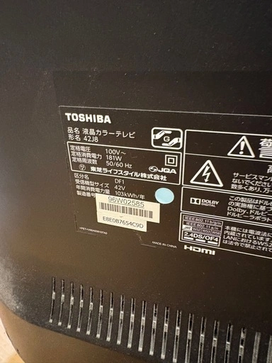 東芝REGZAの薄型テレビです。 型番…42J8 音声は出ますが、画面が映りません。 ご自身で修理できる方、部品取りに使いたい方にお譲りします。 ホコリ等あります、お渡し前にできる限り取り除きますが、完璧にはいかないと思います。 ご理解頂ける方、自宅まで取りに来ていただける方、よろしくお願いします。 ※自宅までの道はかなり狭めです。大型車の出入りも可能ですが、対向車が来た場合に脇に避けながら来ていただく必要があります。ご了承の上、よろしくお願いします。