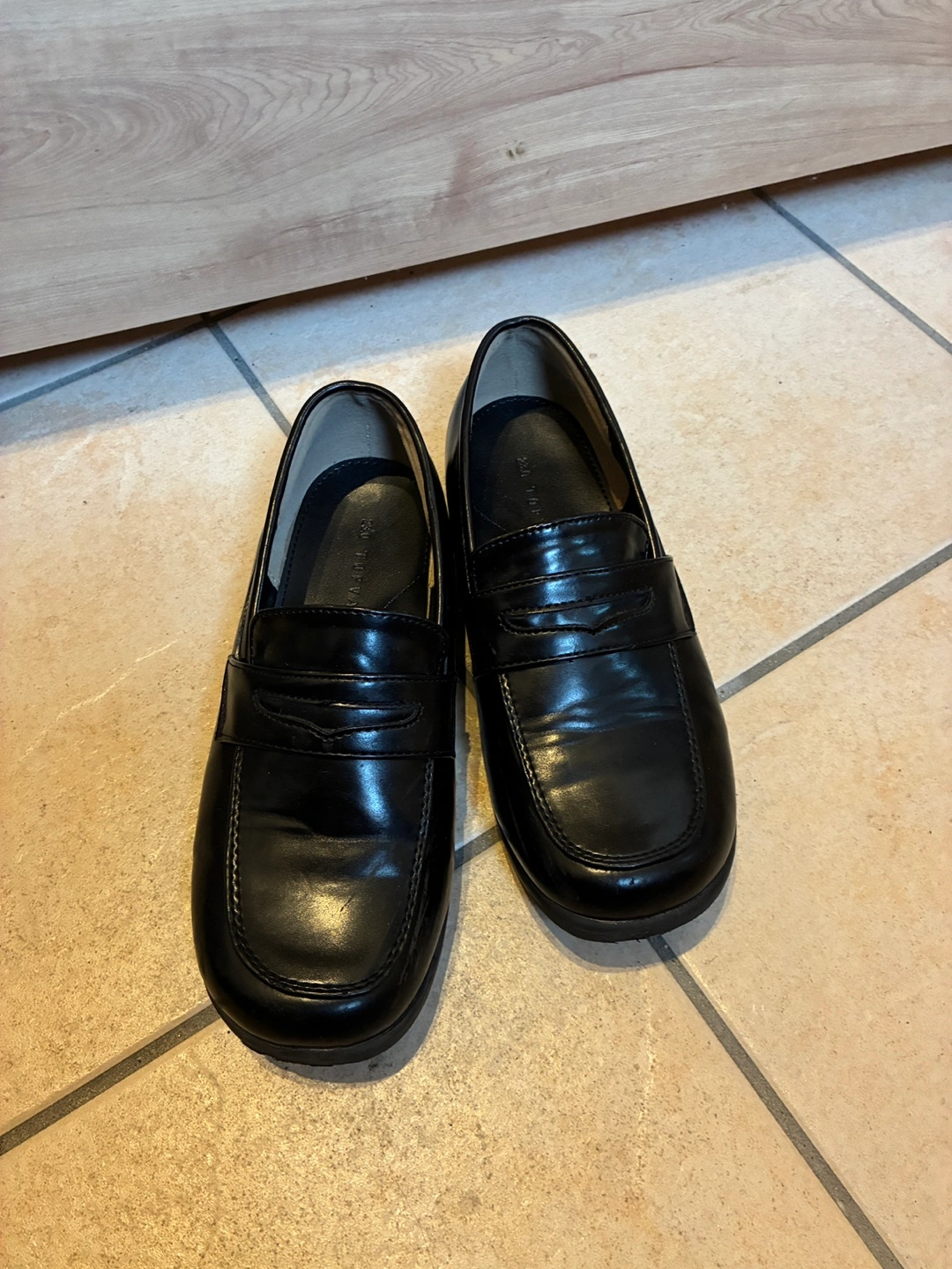 トップバリュー製の革靴です。 23センチジュニアサイズです。 通学用雨天時のみ数回使用したあと、サイズアウトしてしまい、自宅保管していました。 目立った傷や汚れはありませんが、中古品としてご理解いただき、使っていただける方がいらしたら、お譲りしたいです。 受け渡し場所は自由が丘近辺を希望しておりますが、駒沢公園、砧公園あたりまでなら可能ですし、リクエストをいただければできるだけご希望に沿うように致します。 ご検討、宜しくお願いします。