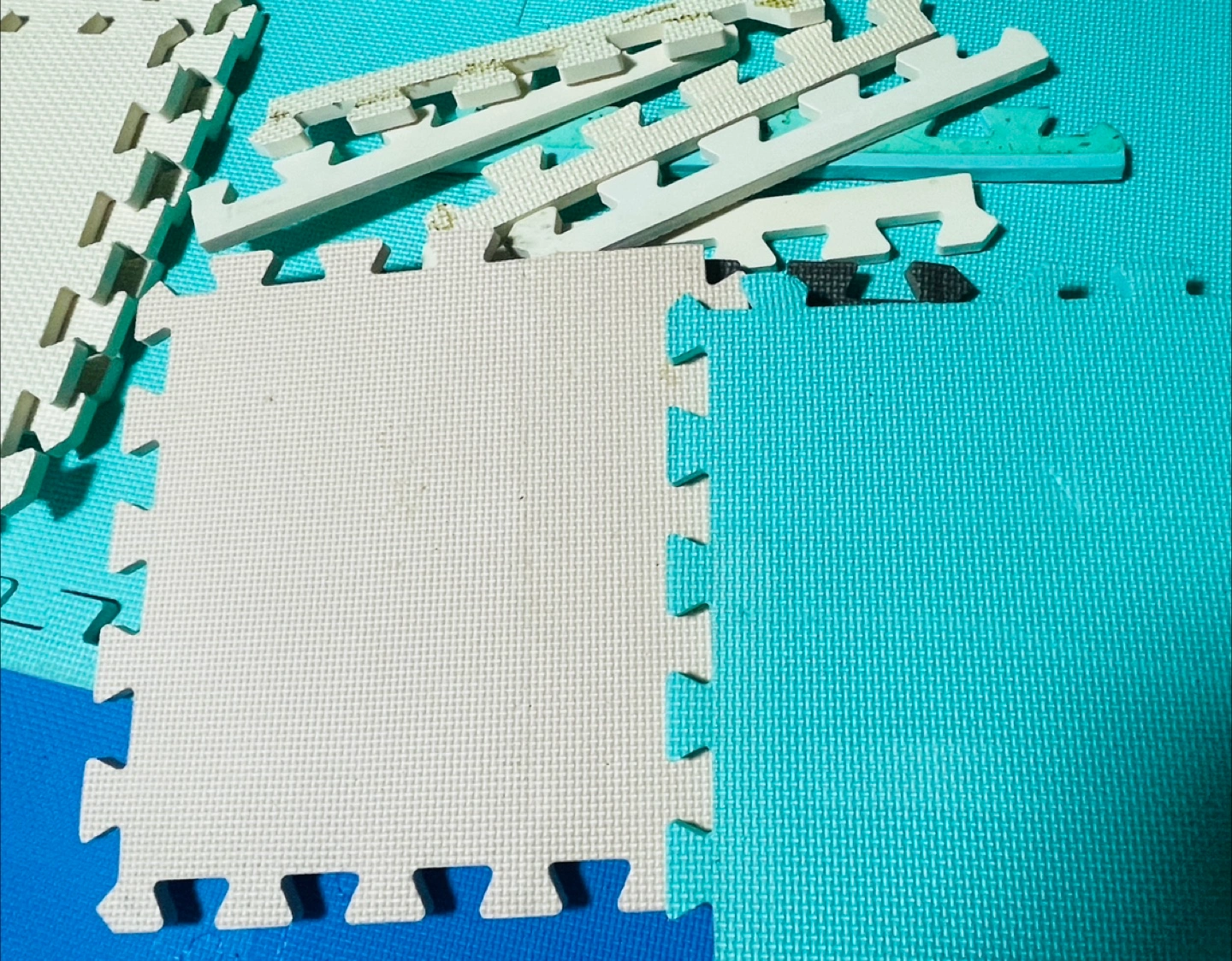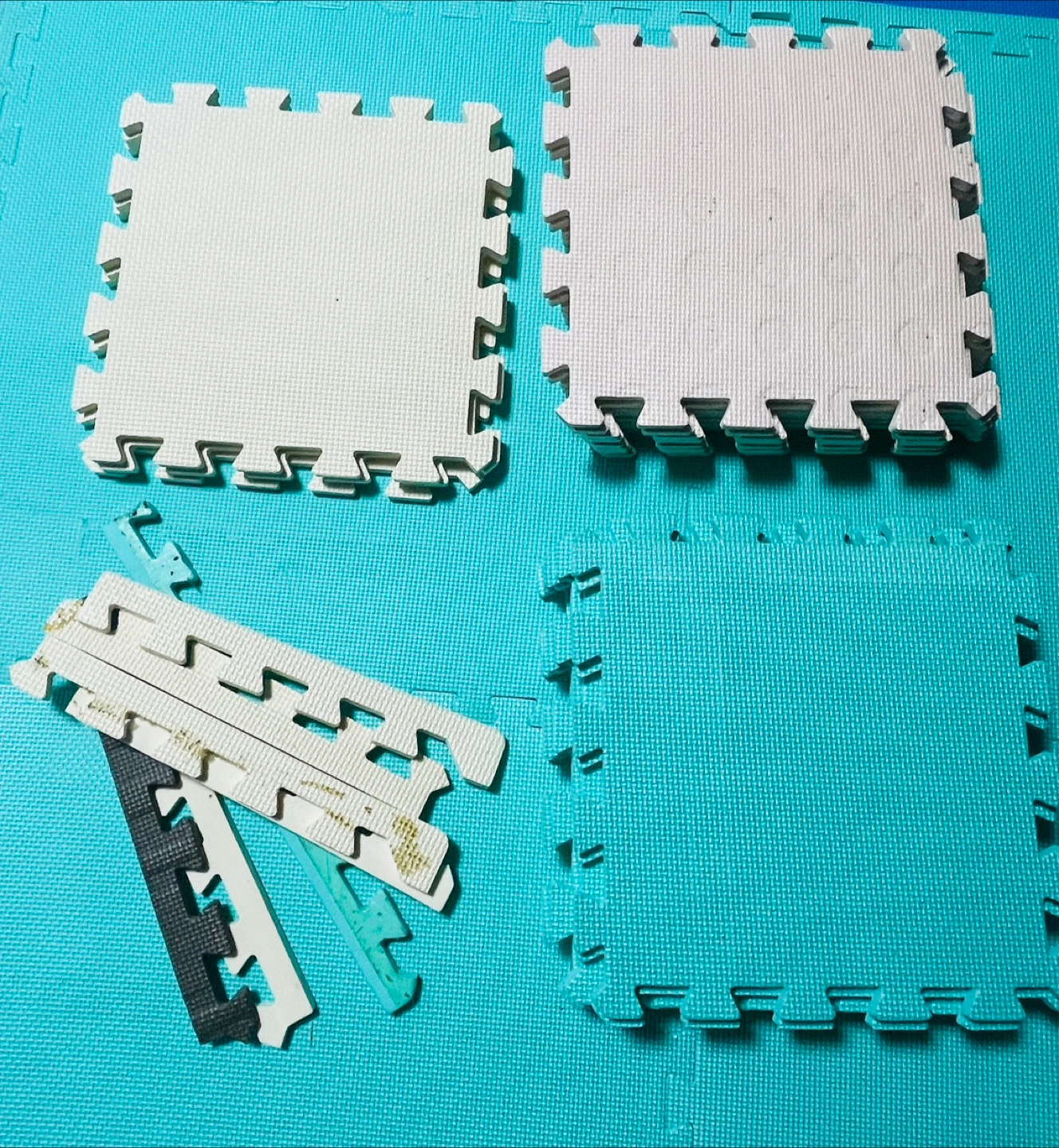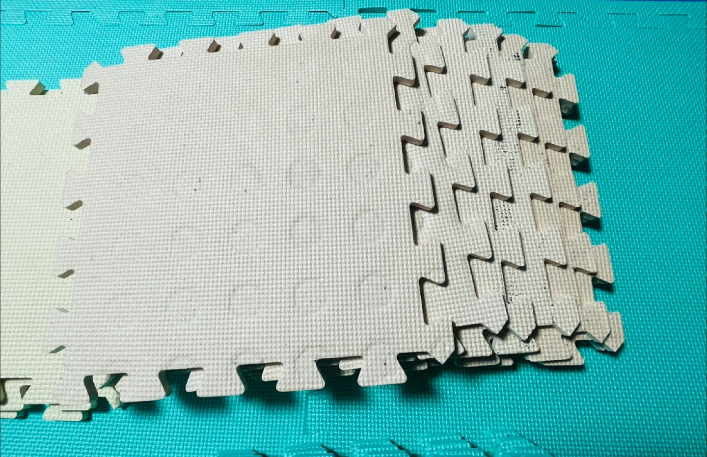 ジョイントマット 30 x 30cm 計18枚 グリーン7枚 ベージュ系3枚 ベージュ系(やや赤み有)8枚 汚れていたり、凹み(椅子の脚の跡等,回復はしてくると思います)があるものも含まれます。 裏に両面テープを貼っているものもあります。 ご希望であれば、耳や端材多数あるのでお持ち帰りください。 北区中十条まで来て頂ける方のみと取引させていただきます。値引き交渉および梱包は致しません。 埼京線十条駅および京浜東北線東十条駅が最寄り駅ですが、駅でのお取り引きには応じません。指定場所でのお取り引きとなります。 以上、よろしくお願い致します。