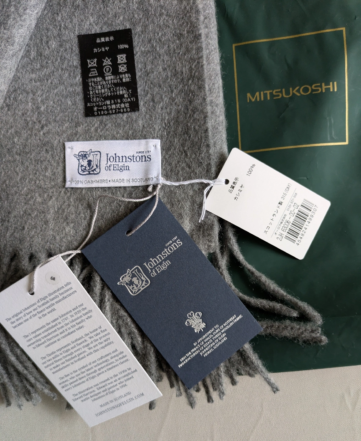 ジョンストンズ オブ エルガン カシミヤ マフラー
