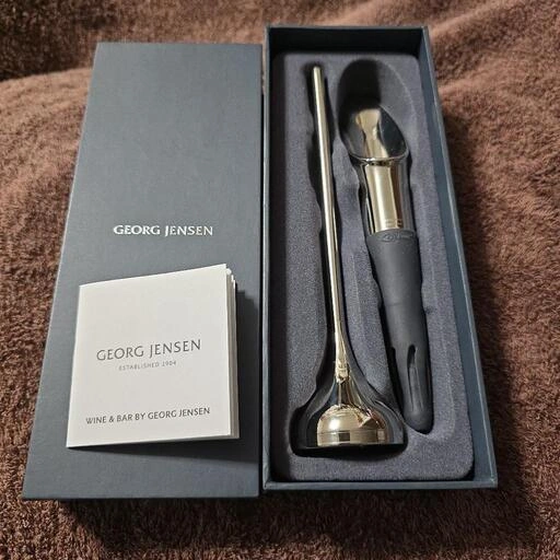 ジョージ ジェンセンのワインセットです。 ワインポアラーはOxiPour™機能付き。 ステンレススチール・シリコン製。 家庭内での保管品ですので、気になる方はご遠慮ください。 ・火のそばに置かないでください。 ・食器洗浄機、電子レンジ 不可 ・ご使用後は時間をおかずに、中性洗剤とぬるま湯で汚れを洗い流し、よくすすいでください。洗浄後は、乾いた柔らかい布でよく拭いてから乾かしてください。 ・サビ・傷の原因になる場合があるため、スチールたわし、研磨剤入りたわしなどは使用しないでください。 ・サイズに関しては、ロットにより多少の誤差が発生しますので、あらかじめご了承ください。 ご不明点はお気軽にお問い合わせください。