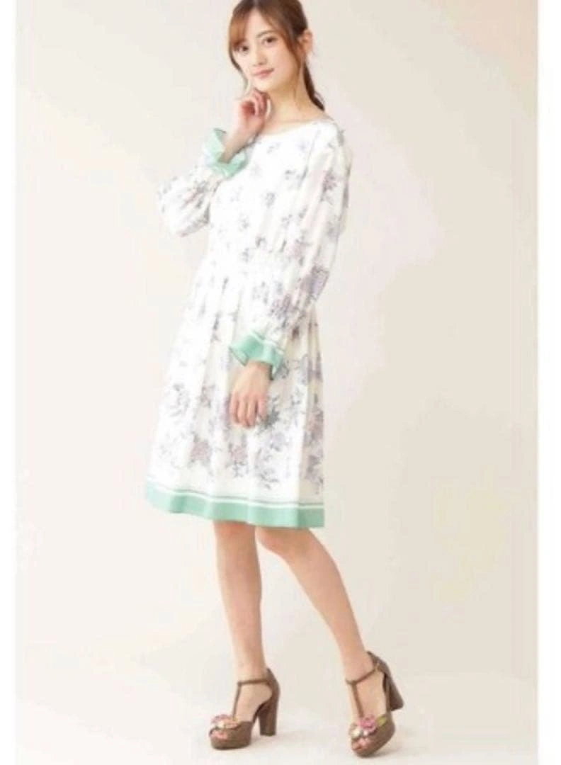 ジルスチュアート 花柄ホワイトグリーン 膝丈ワンピース