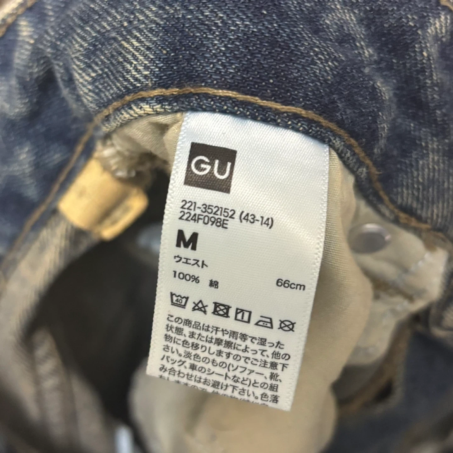 ジーユーのデニムパンツです ブルーとネイビーの2本セットです。 1度洗濯し直してからお渡しさせていただきます🙇‍♀️ お渡し場所は指定場所以外でもプロフィール記載の範囲内なら検討いたします。 ・ブランド:ジーユー ・サイズ:M ・ウエスト:66cm ・素材:綿100% ・色:ブルー、ダークブルー ・使用感あり 中古品であることご了承ください
