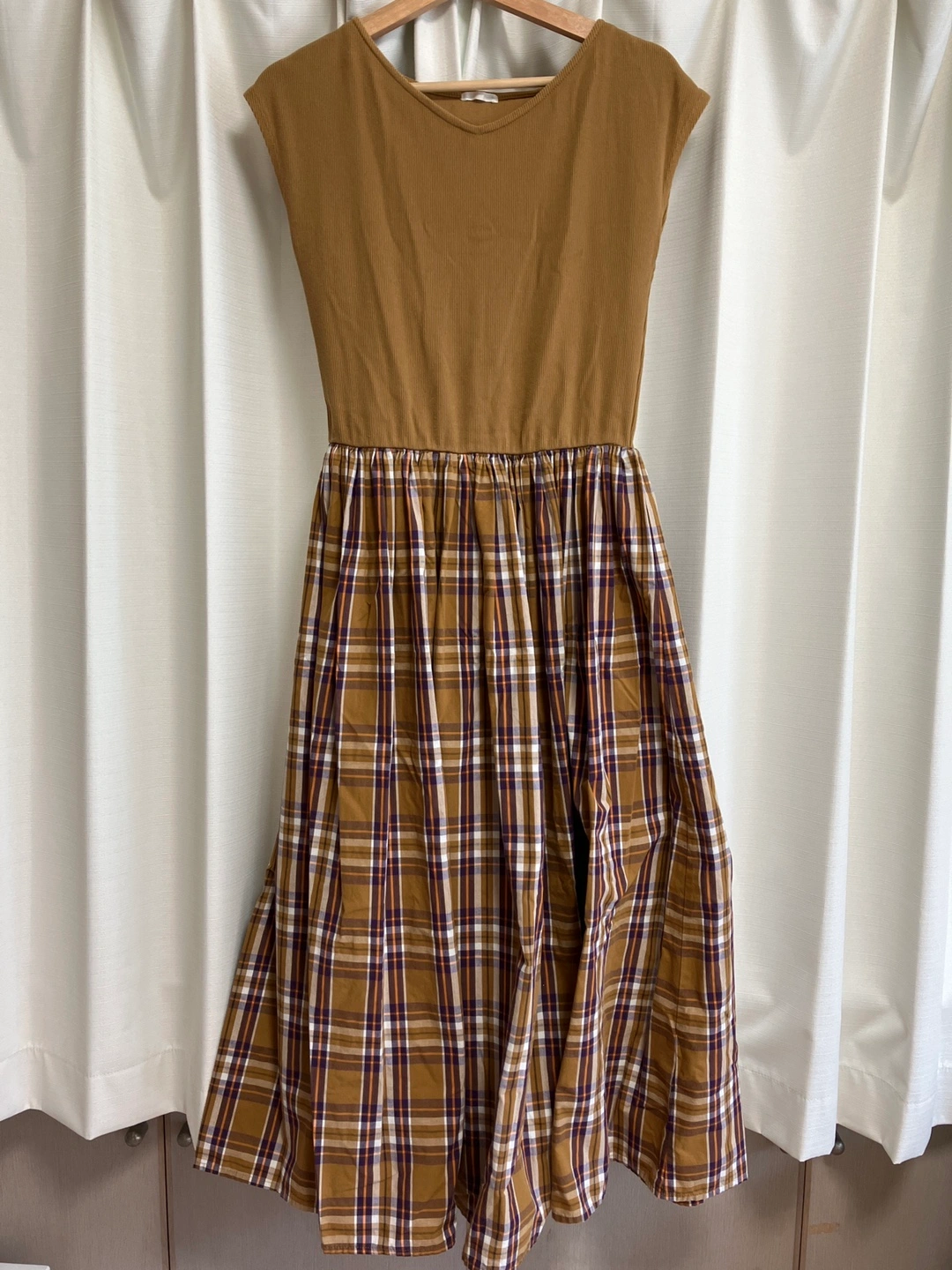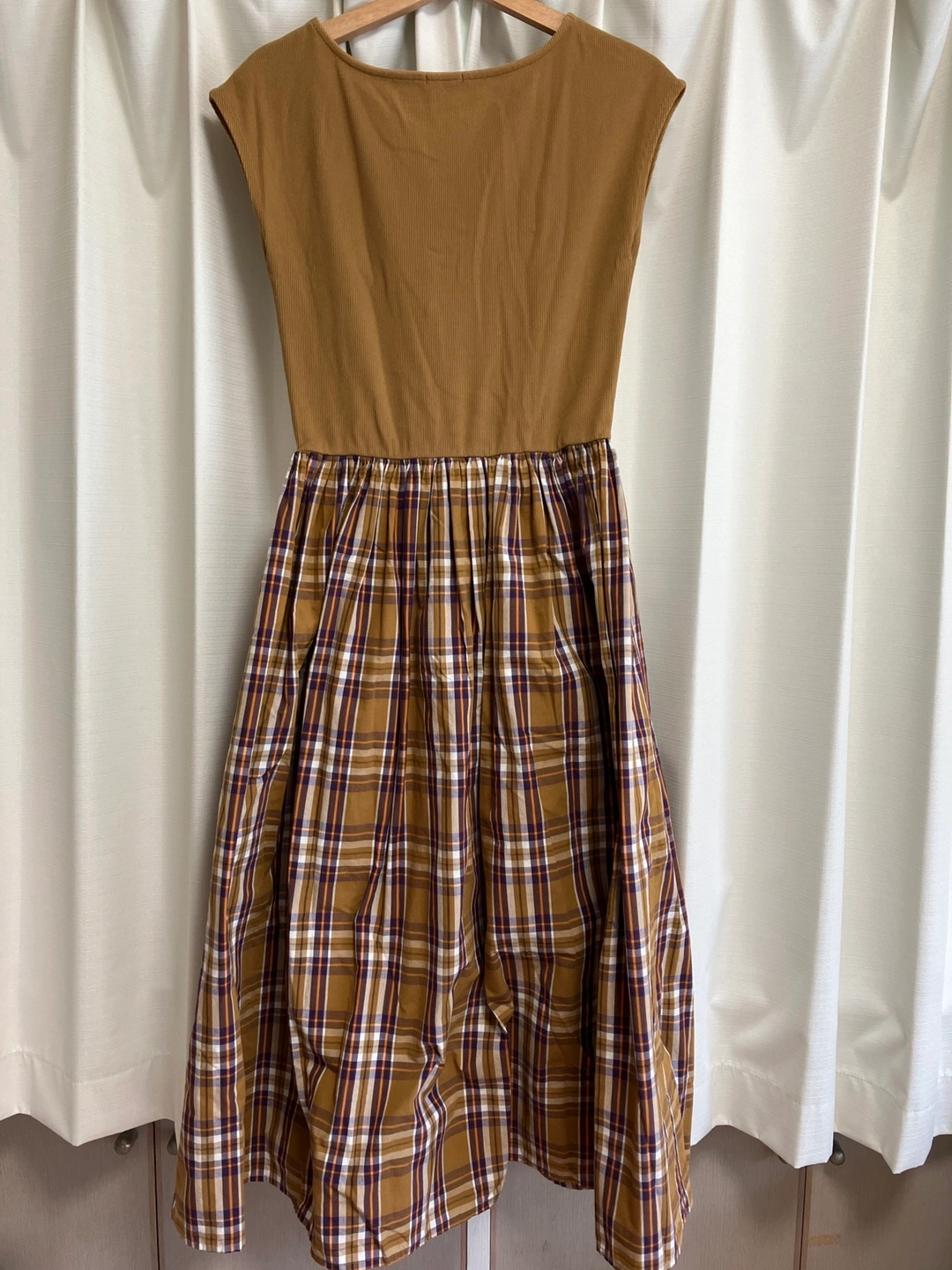 ジーユーのワンピースです ・カラー:茶色、チェック柄 ・サイズ:M ・型番:241-300988 ・素材:綿、ポリエステル、ポリウレタン ・使用感少なめ 中古品であることご了承ください