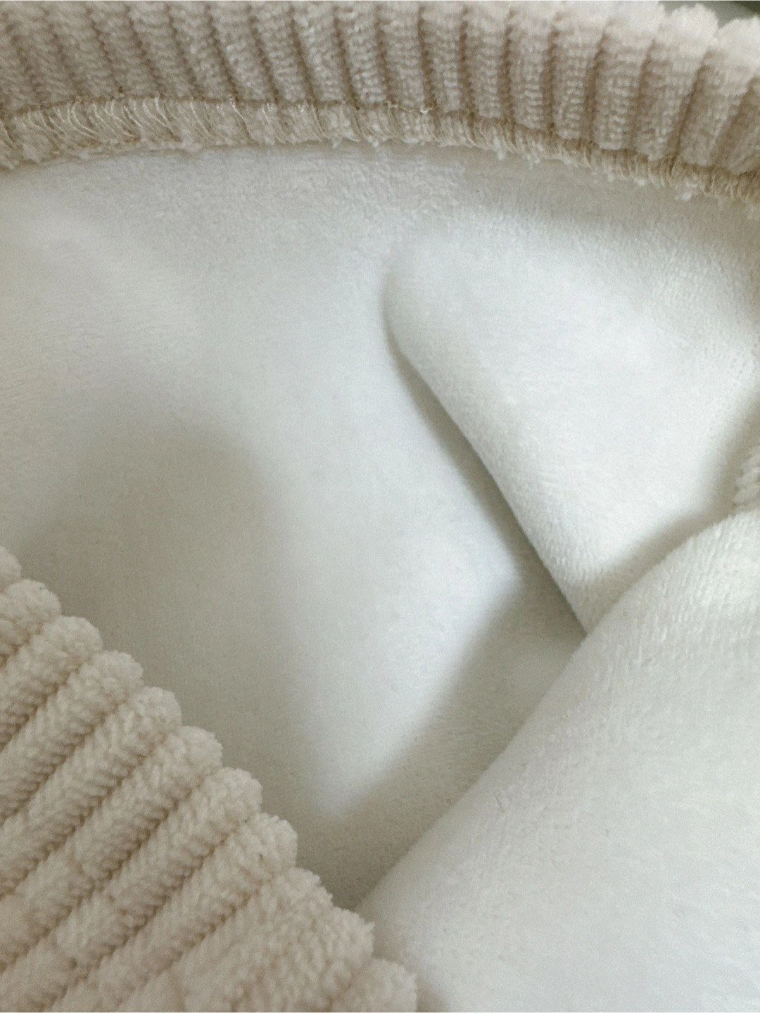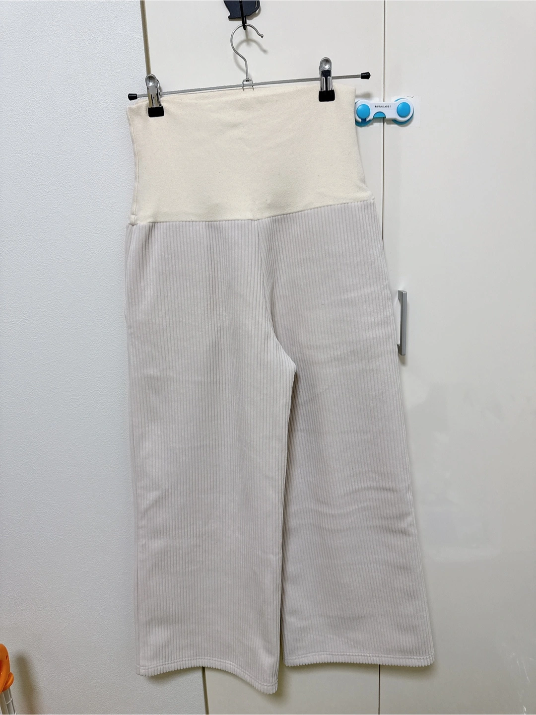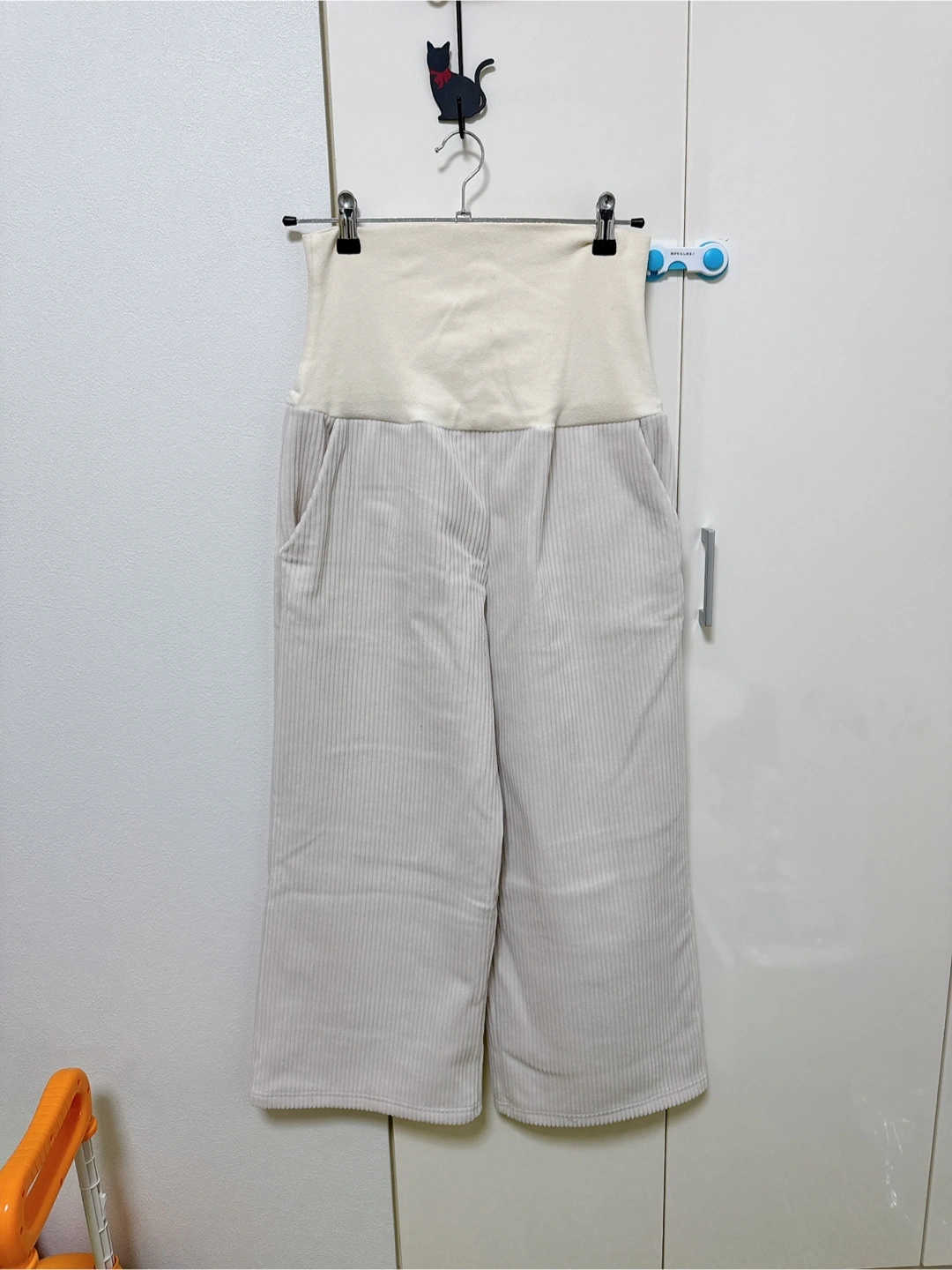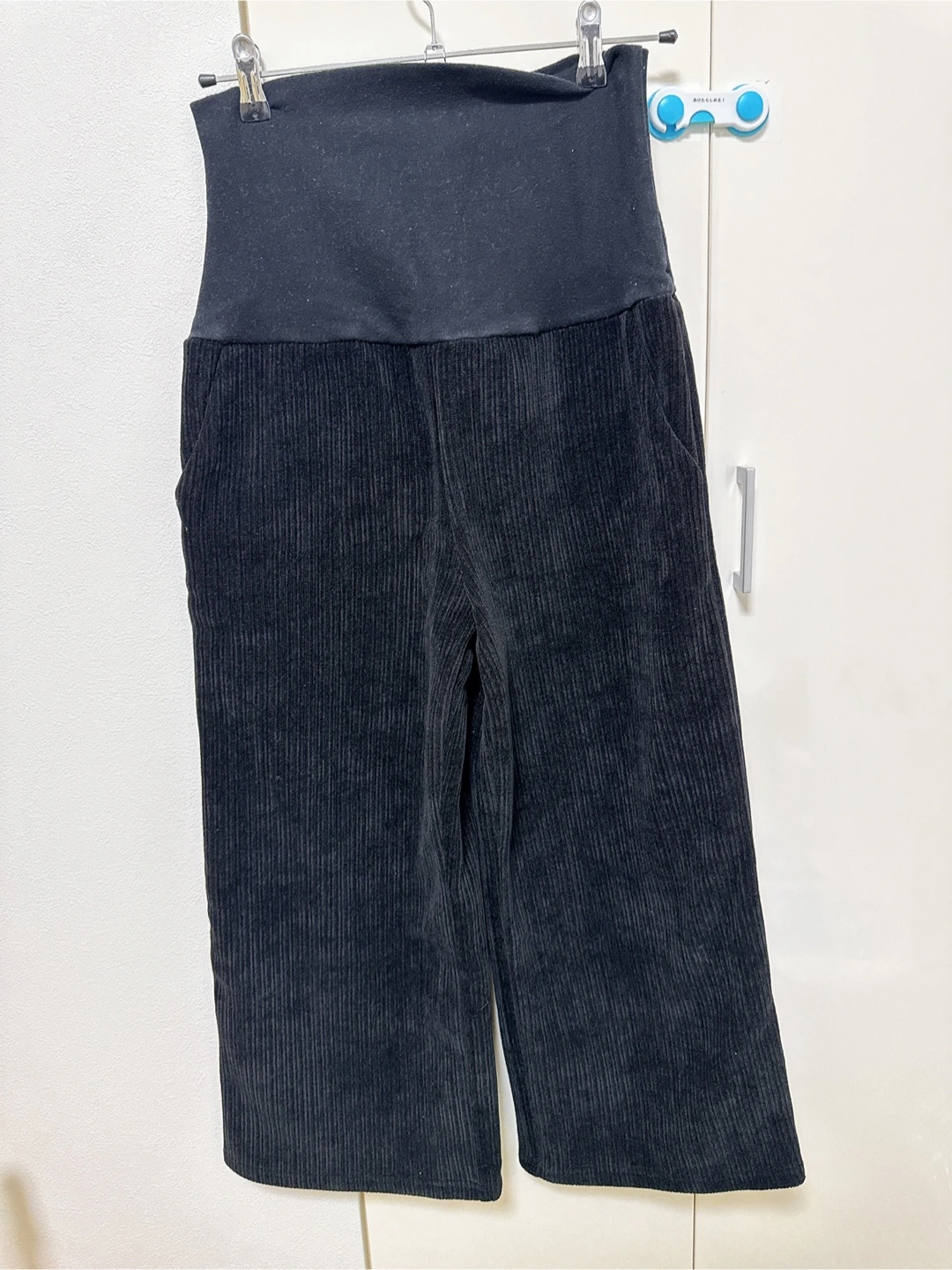 あたたかさスウィートマミーのマタニティパンツです。2024年11月に購入しました。 Lサイズですが、低身長のため裾上げし、股下60cm弱ぐらいになっています。 冬に妊娠後期を迎える低身長の方におすすめです。 購入単価は4,950円+裾直し2,500円でした。 ・ブランド:スウィートマミー ・マタニティパンツ ・コーデュロイ ・色:黒、白 ・ウエスト部分:ゴム ・素材:ポリエステル、ポリウレタン、綿
