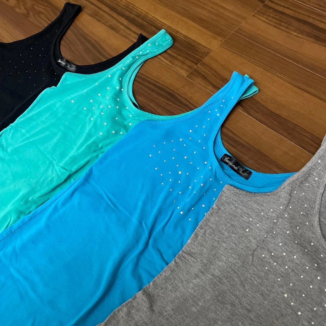 スタッズ付きのタンクトップです。 色違いで4色セットです。 (ブラック、グリーン、ブルー、グレー) 多少の使用感はありますが、肌触りもいいのでインナーにいかがでしょうか。 使用品のため、ご理解のある方のみよろしくお願いします。 ご希望の方はお気軽にご連絡ください。