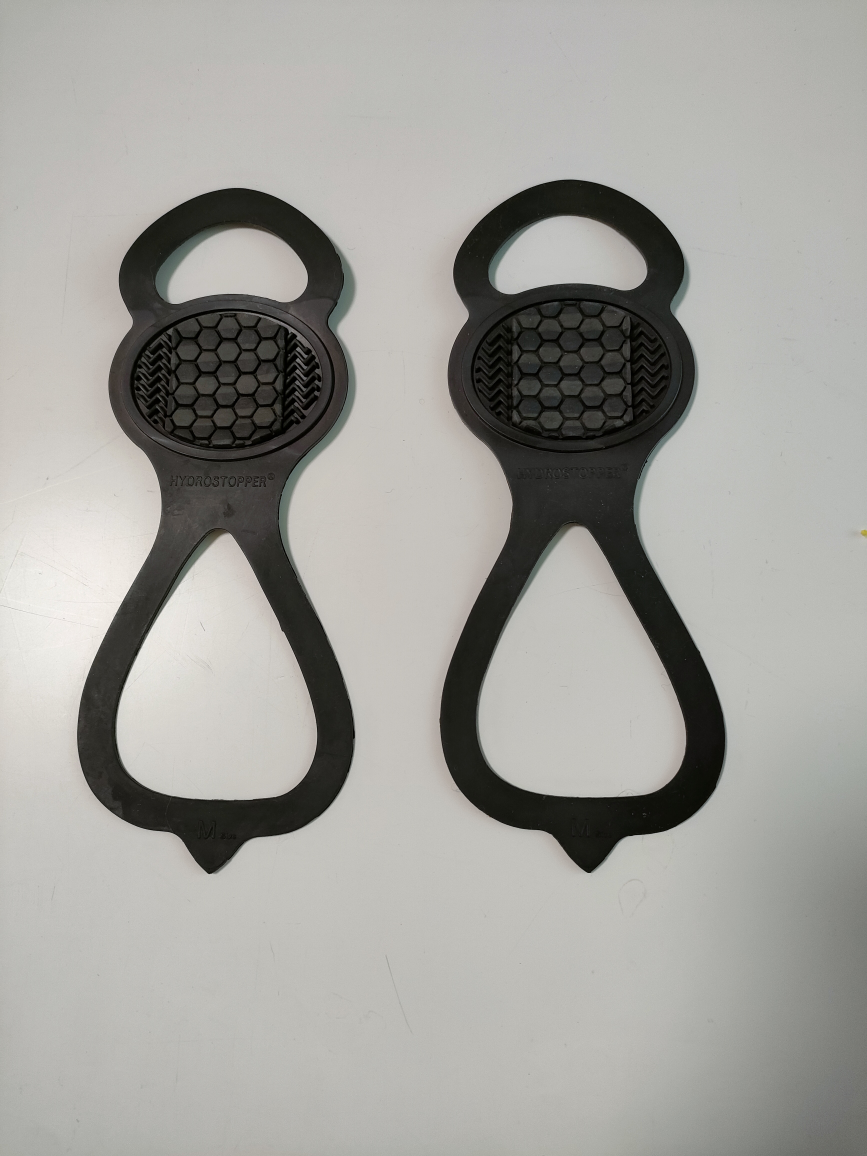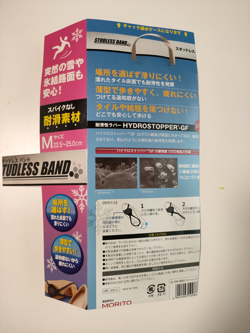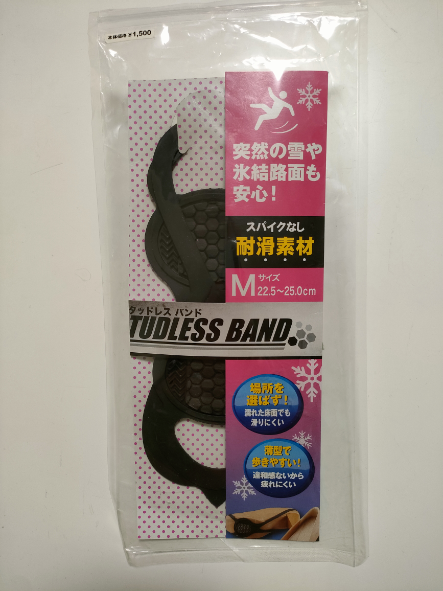靴に引っ掛けて装着する滑り止めです。 サイズはM 22.5~25cm 一度家の中で靴に付けてみたきり、下駄箱で眠っていました。 1500円の値札が付いていますが、保管時の汚れも付いています。 よろしくお願いします。