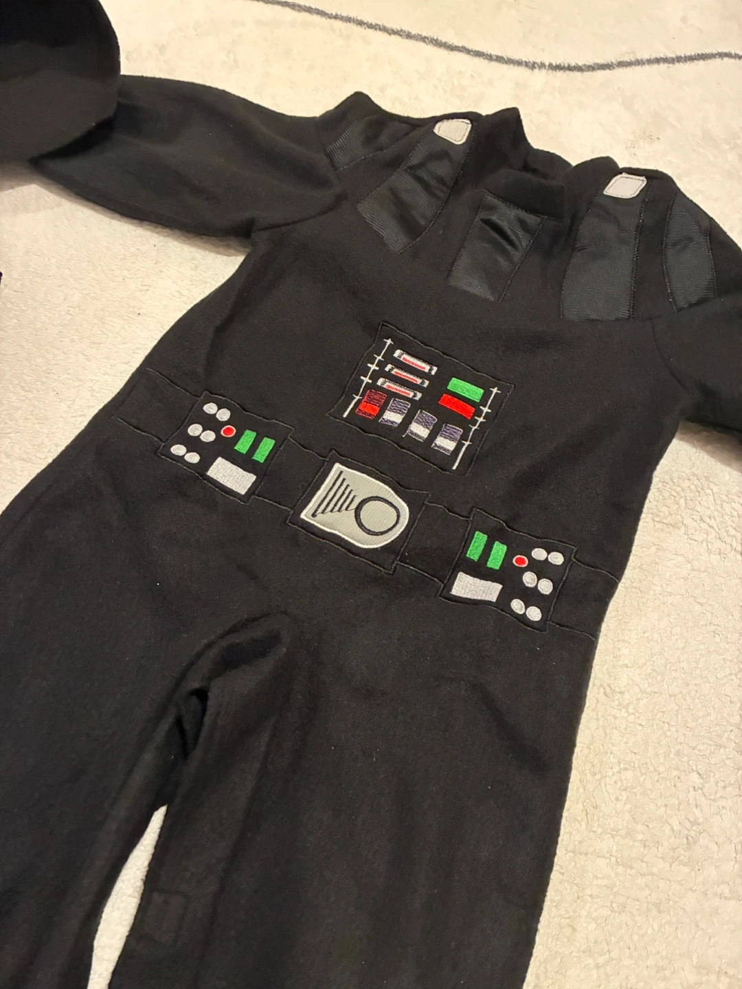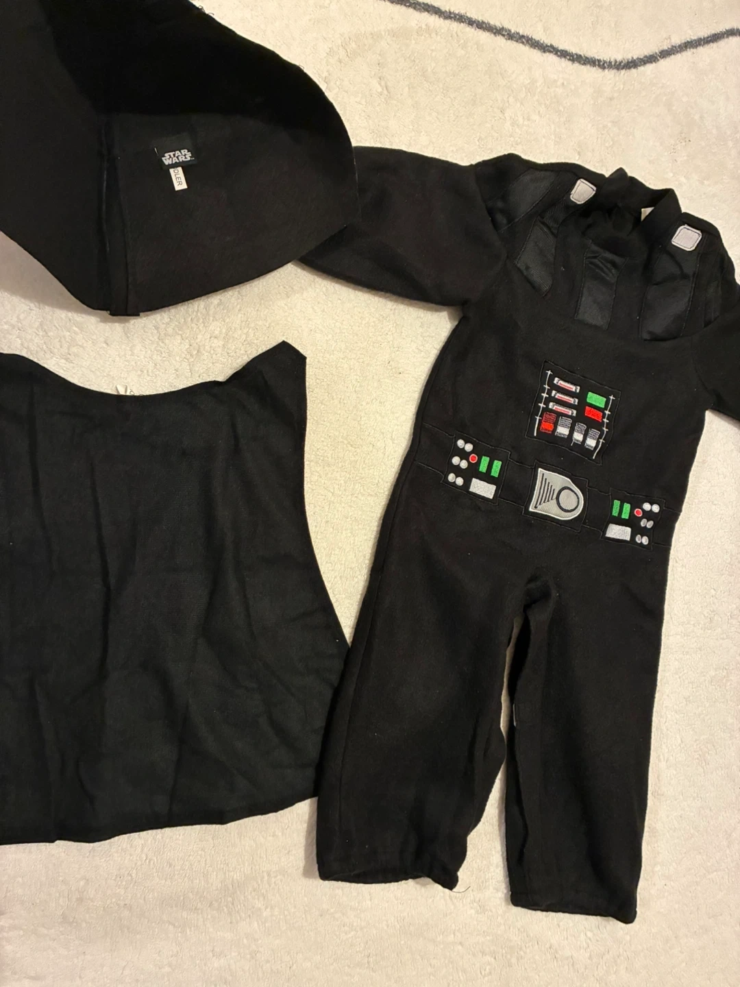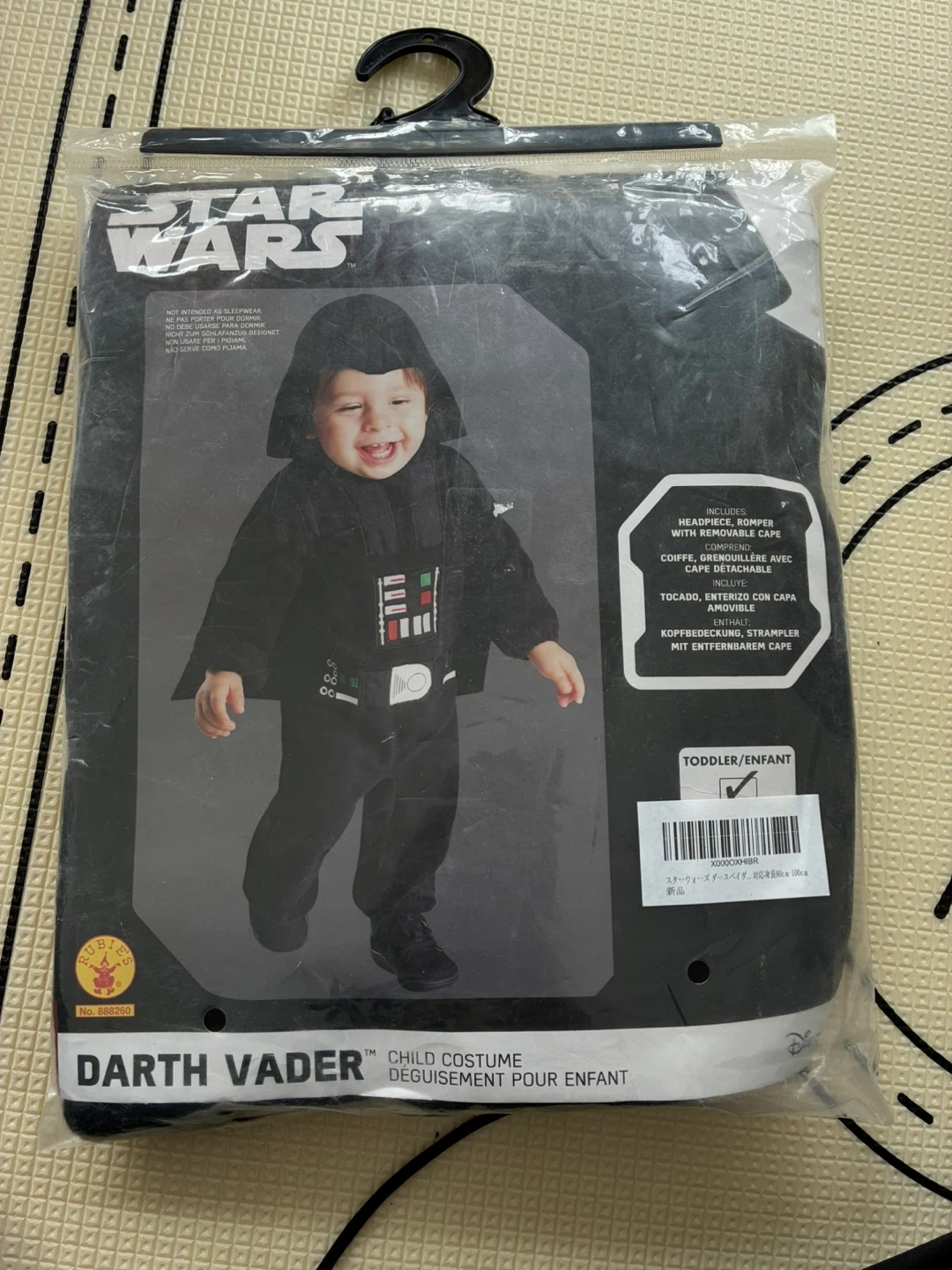 スターウォーズの子供用コスチュームです 【情報】 ブランド:スターウォーズ 商品:ダースベイダー コスチューム 対象:ベビー、幼児 サイズ:80~100cm 【状態】 未使用に近い 【付属品】 ロンパース、マント、帽子 もし希望であればSTARWARSのスタイもプレゼント致します。 美品ですが、中古品であることご了承ください。