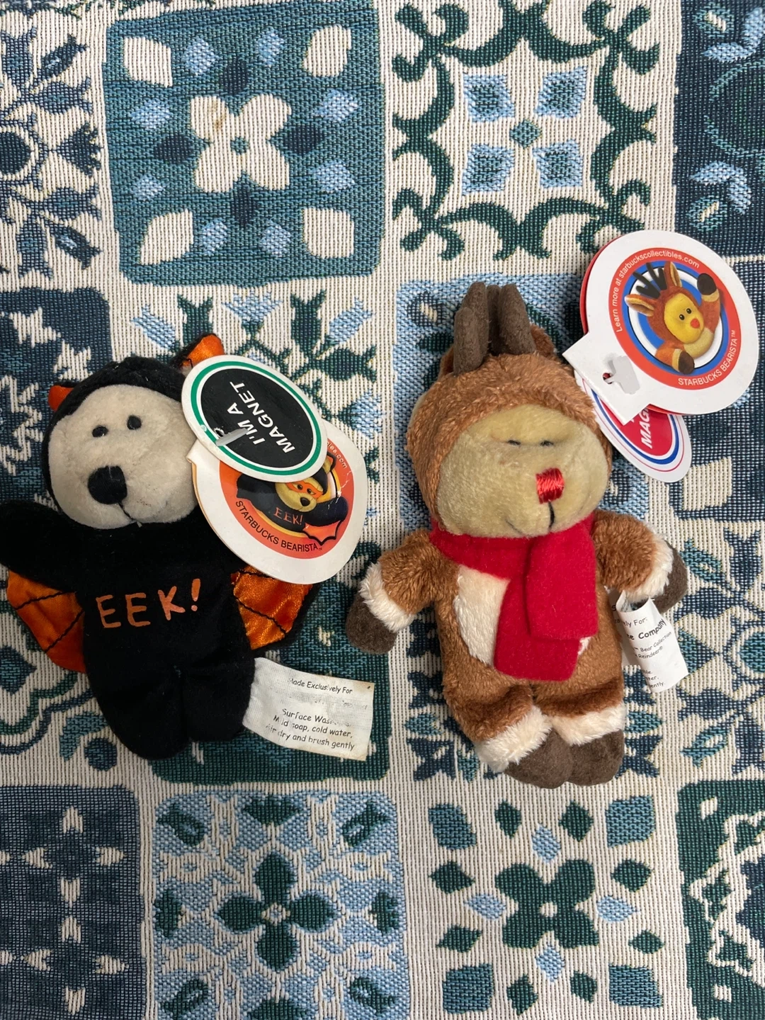 スターバックスのマグネットぬいぐるみ2点セットです。 ・ハロウィンバージョンのくま 汚れあり ・クリスマスバージョンのくま 未使用 中古品であることご了承ください。 よろしくお願い致します。