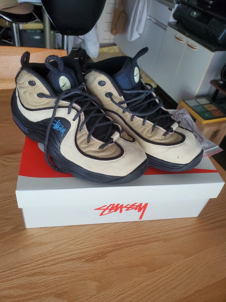 ステューシーとナイキのスニーカーです 【情報】 ブランド:ステューシー, ナイキ 【状態】 使用感少なめ 【付属品】 箱、替え紐 中古品であることご了承ください 1回着用 27.5cm 未使用に近いです Nike x stussy エアペニー2