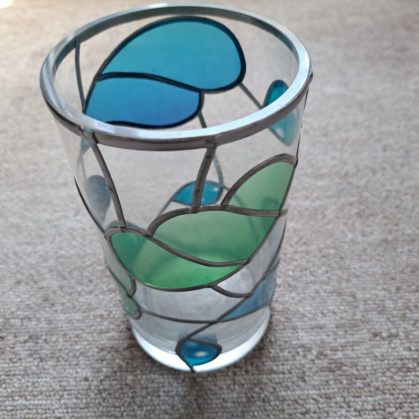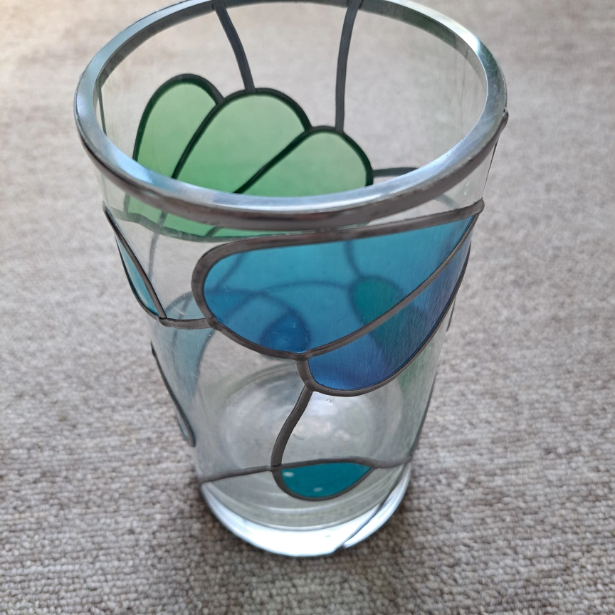グラスーア-トの手作り作品です。 ステンドグラスのようなシ-ルを貼って作成されています。 涼しげな風合いにデザインされています。