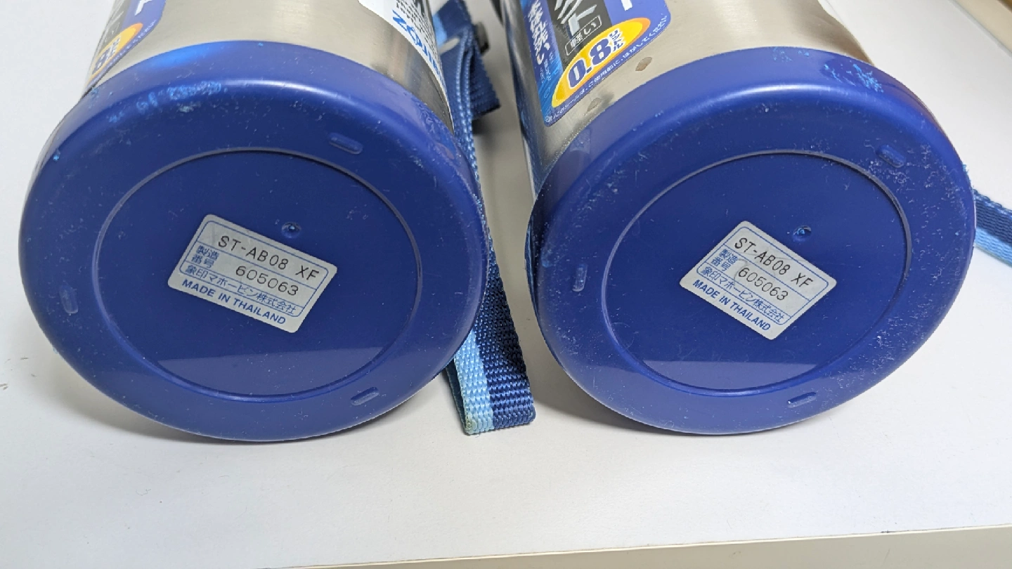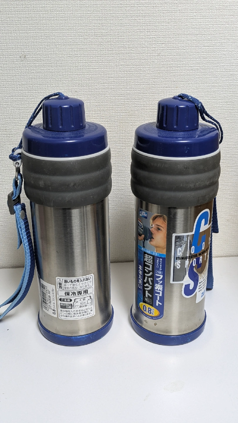 ステンレスボトル2本セットです。 1本だけの場合は、1本500円でお願いします。 ・容量:0.8L ・型番:ST-AB08 XF ・ステンレス製 ・カラー:シルバー、ブルー ・使用感あり 中古品であることご了承ください。